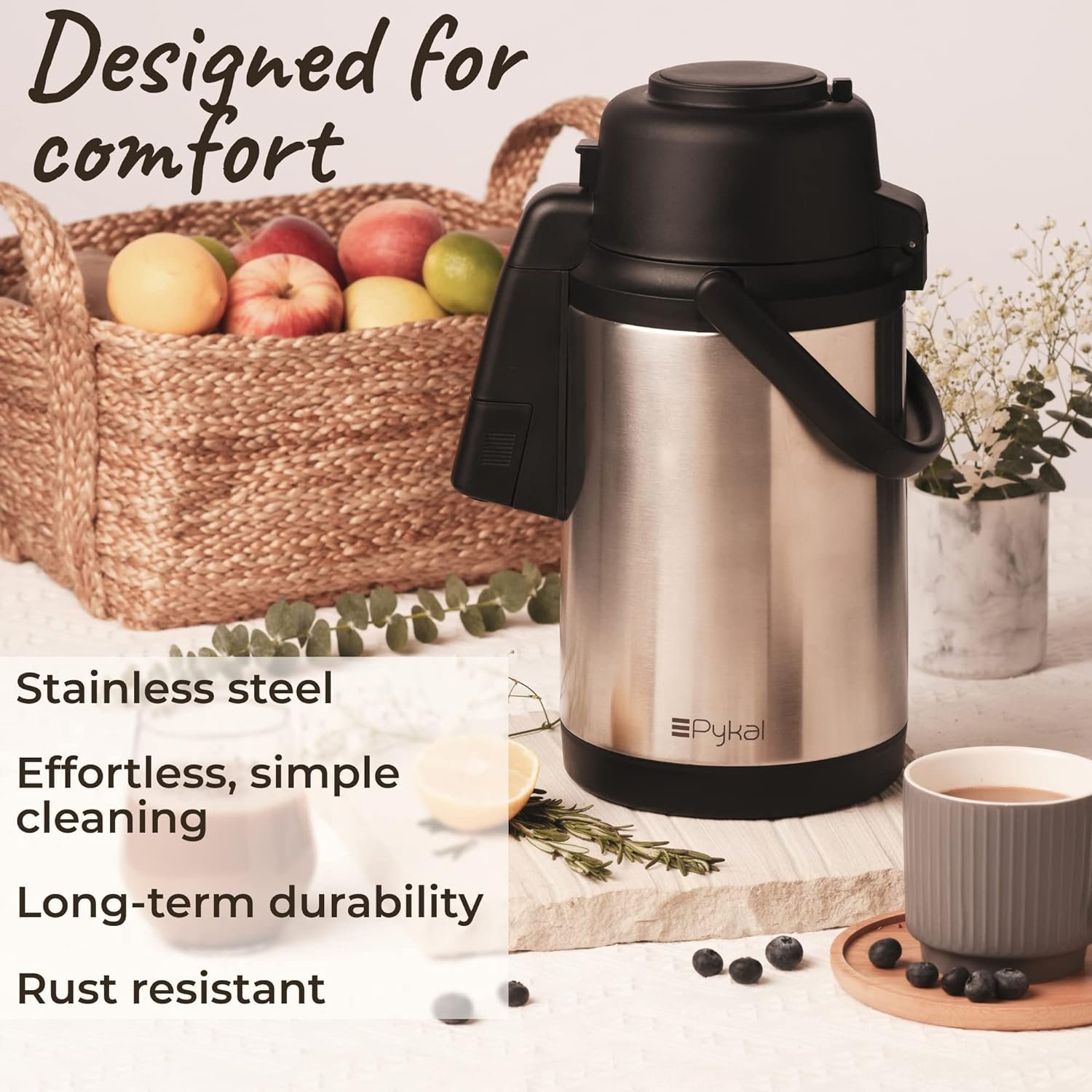 Commercial Grade Rust-Resistant Stainless Steel: Our coffee push was made with a rust-resistant stainless steel. Use this insulated carafe for coffee, milk, tea, water etc. Use it at home, parties, outdoors, work, coffee shops and more