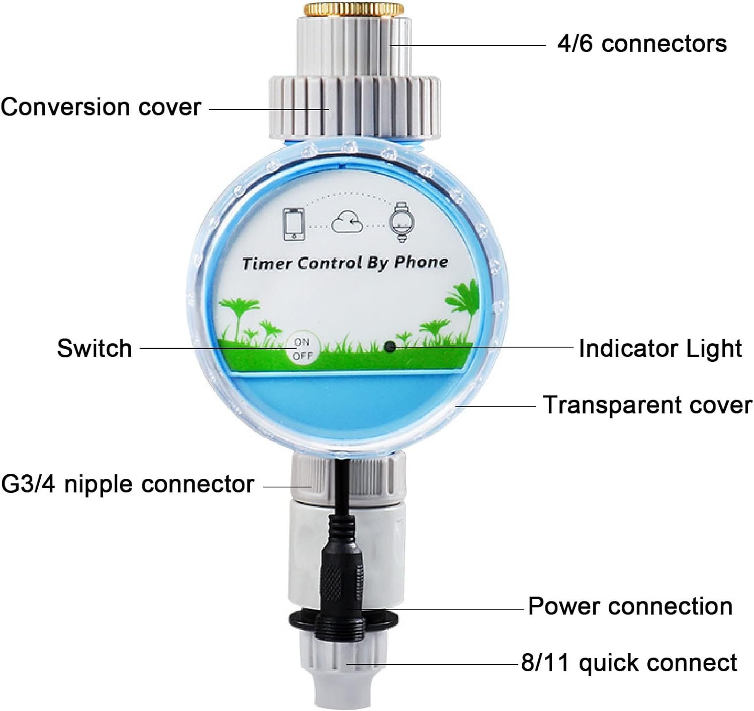 1. WiFi and Bluetooth Connection Remote Control: Watering and spraying your garden can be controlled anytime and anywhere with a smart irrigation timer controlled by WiFi and Bluetooth.