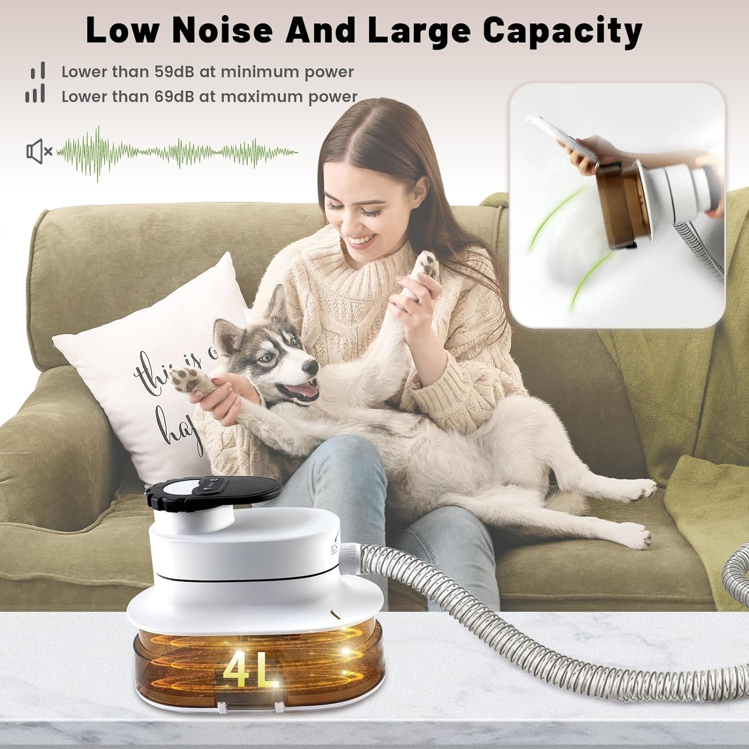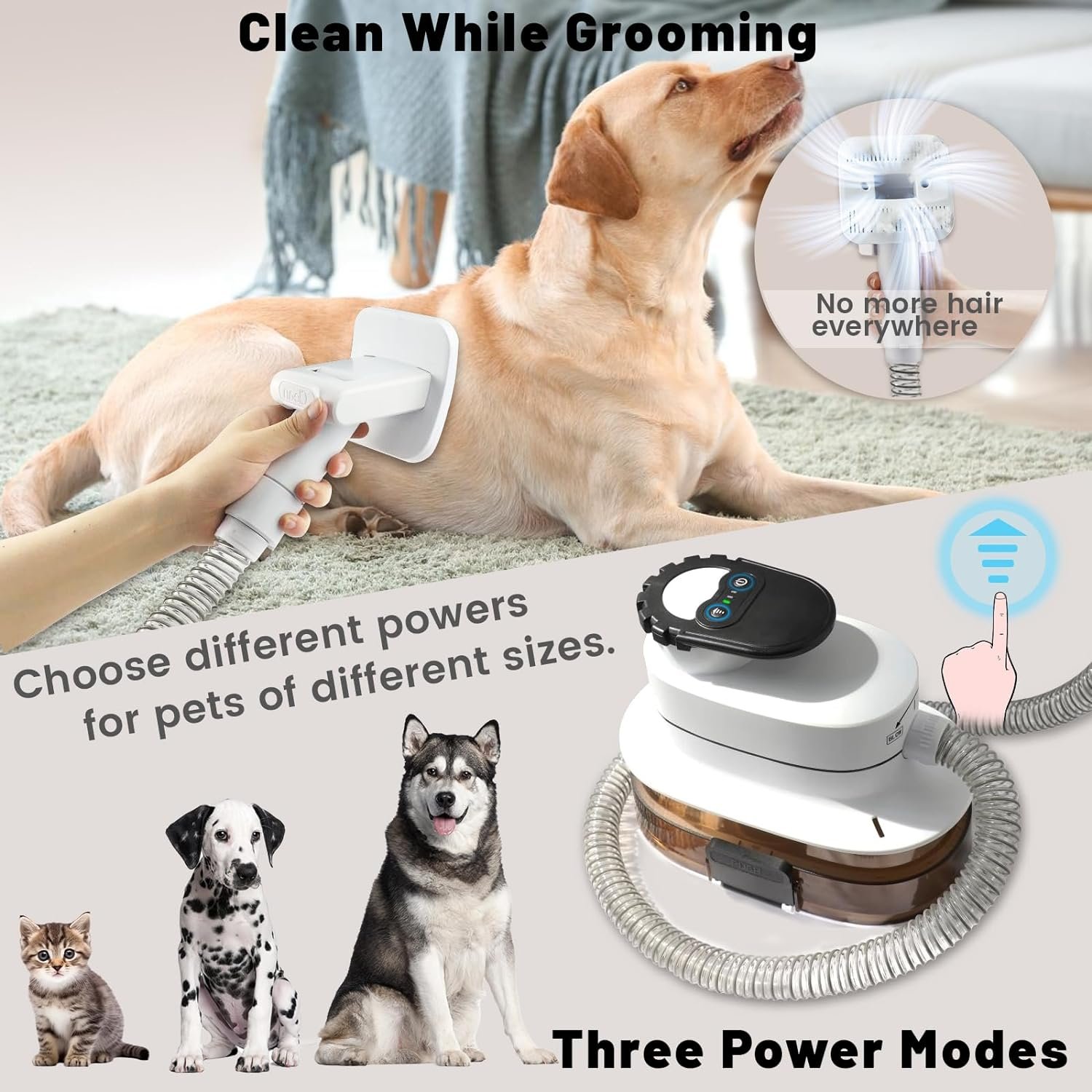 🐩Big Power But Low Noise:The maximum power is reached 280W, but the noise is controlled below 69dB, which will not scare your pets.