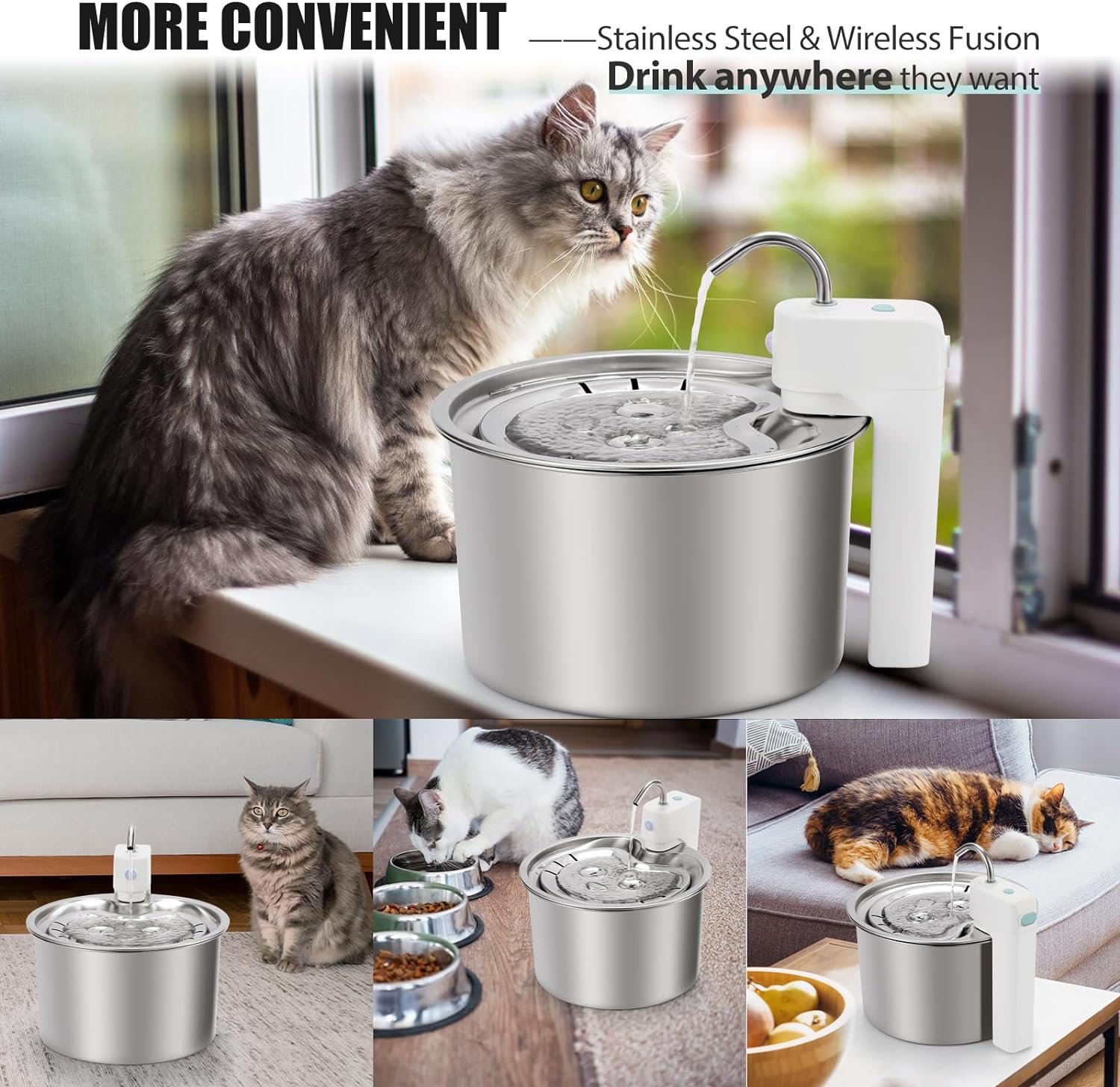 Filter the hairs, soften water quality, improve taste to provide cleaner and healthier water for your cat.
