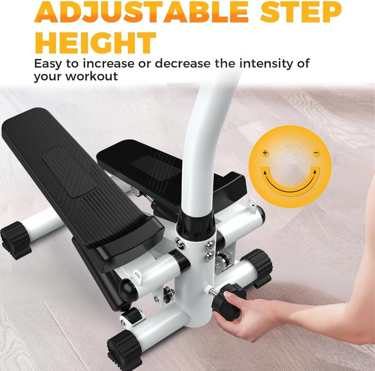 【Mini Stepper With Handlebar】Stepper with Handlebar helps keep you balanced while you step. Great for beginners who are new to the stepping world. The U-shaped Handlebar Provides different grip points and meets more different heights of your family. The new design of the handlebar rod bent outwards provides enough space for stepping exercises to prevent the knee from touching the rod during exercise.