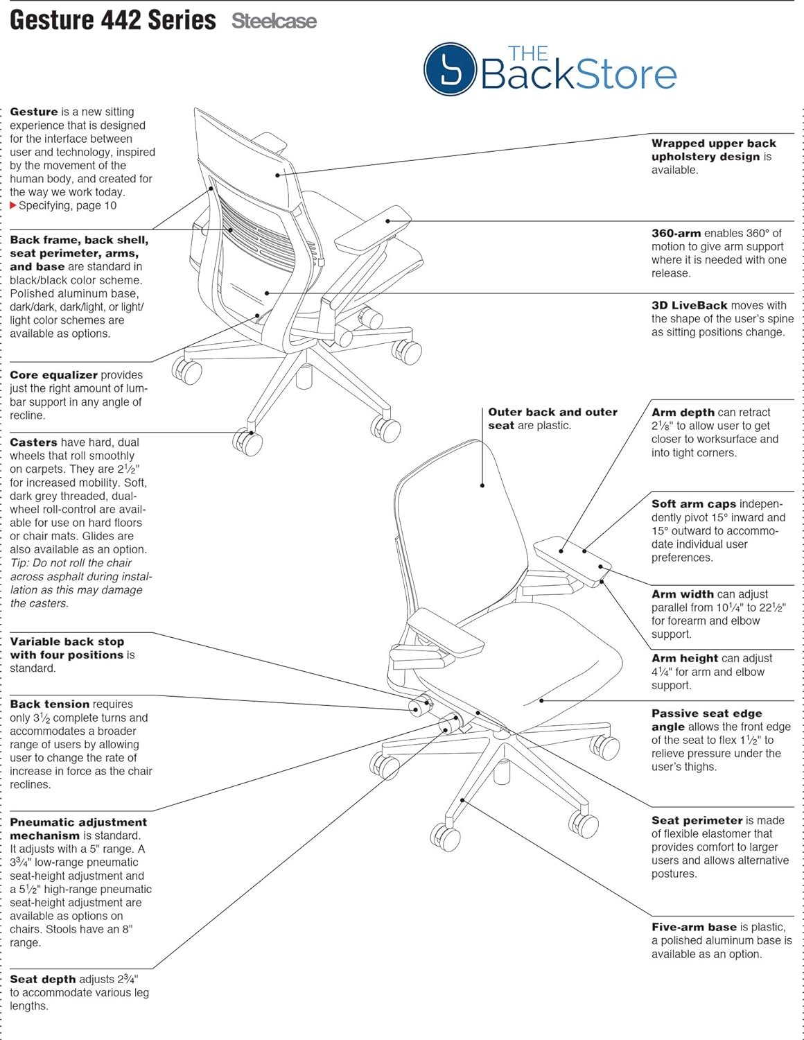 All day comfort and back support – Gesture’s seat and back move as a synchronized system, following your body as you move throughout the day to ensure long-term support