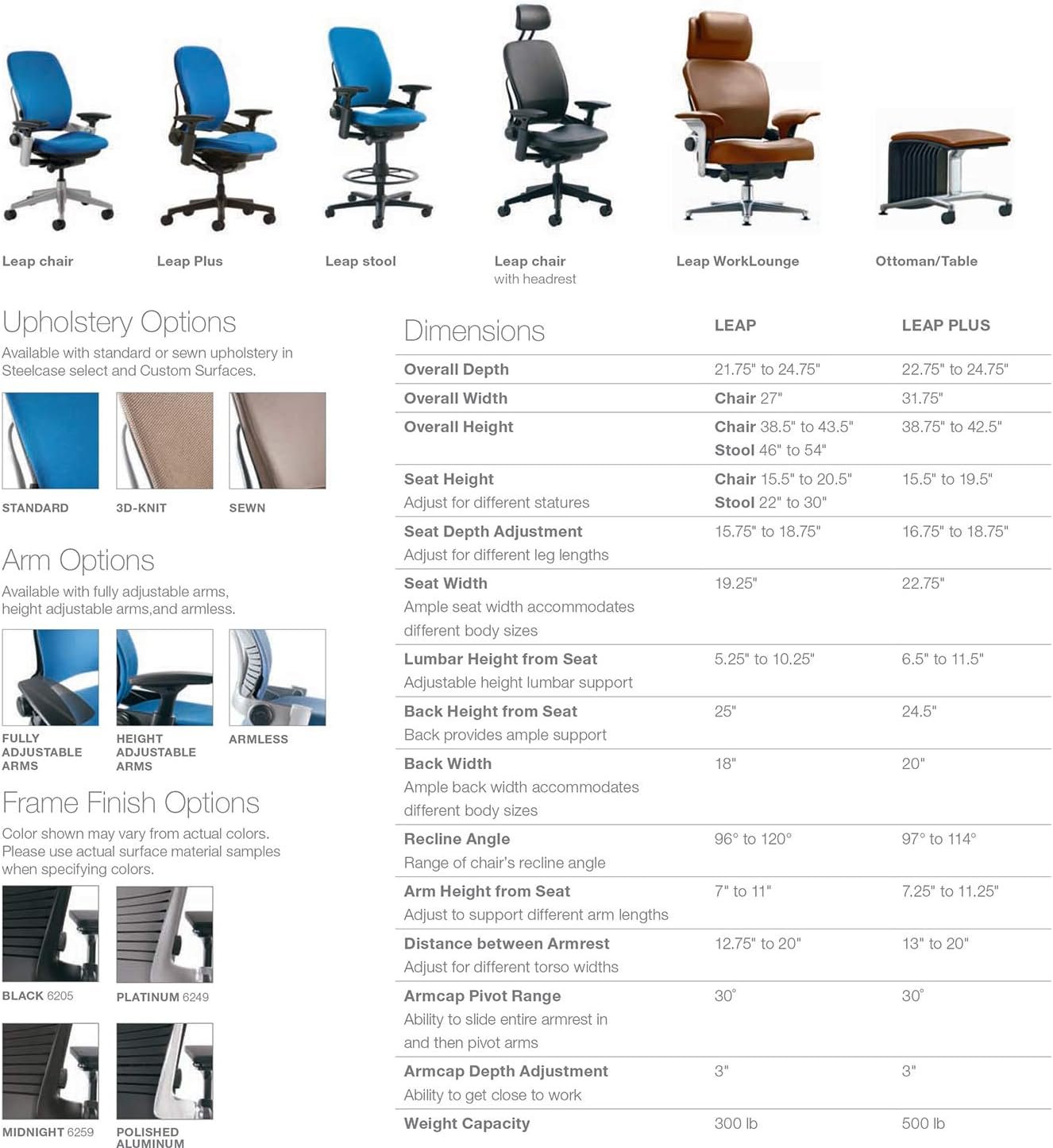 All day comfort and back support – Leap’s contoured backrest changes shape as you move to support your entire spine, ensuring long-term comfort