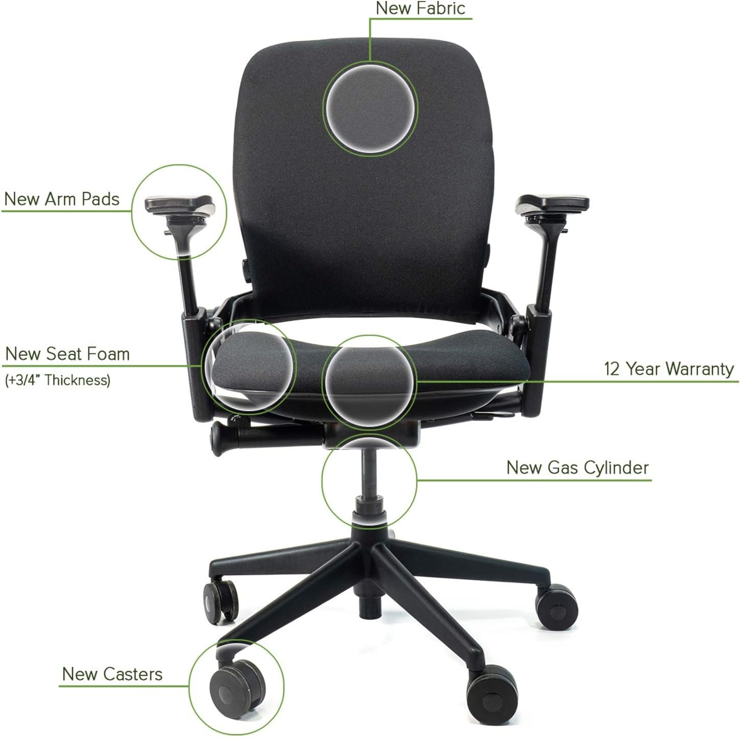 New Casters, New Gas Cylinder, New Arm Pads, New Fabric