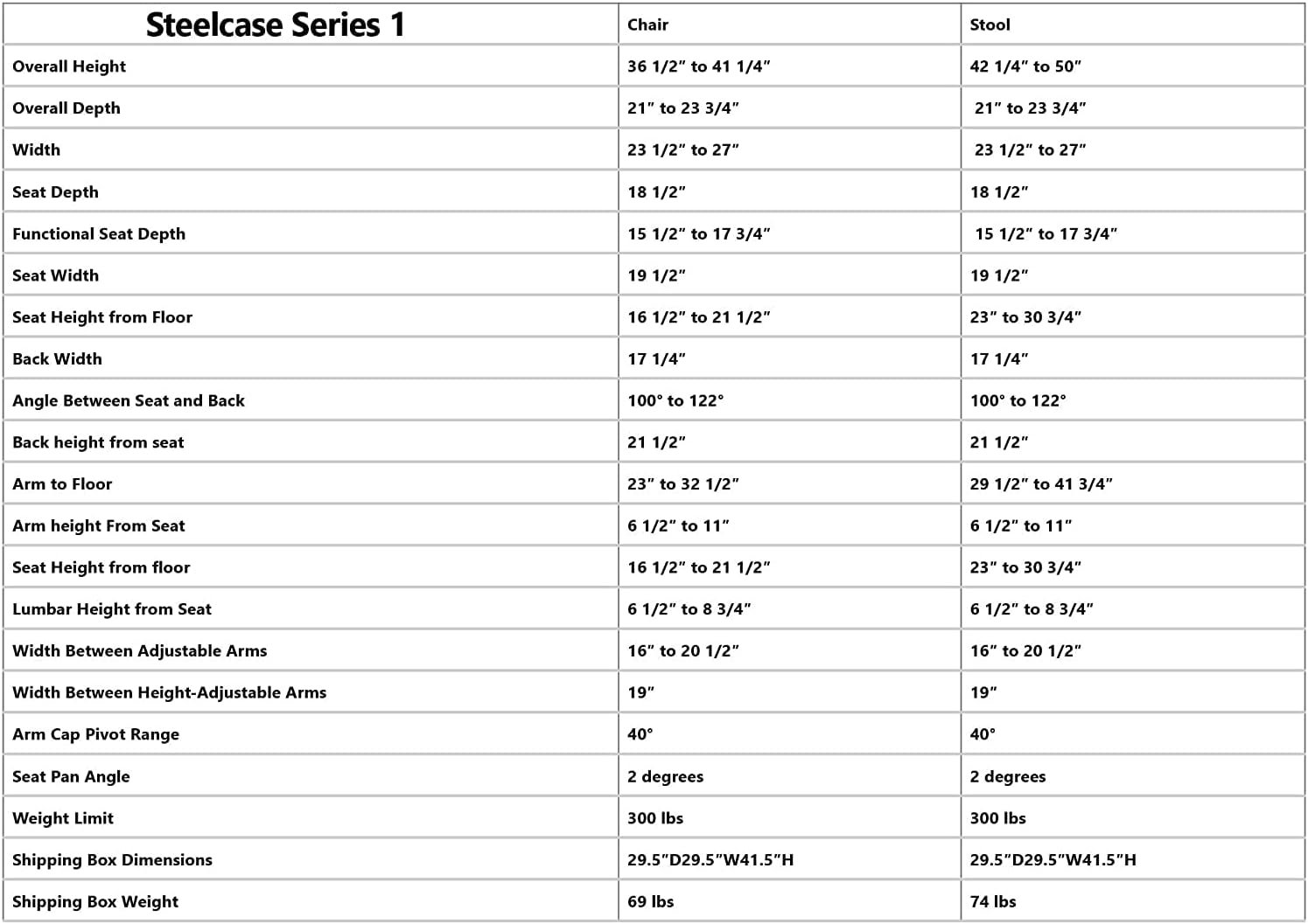Steelcase Series 1 Chair Dimensions