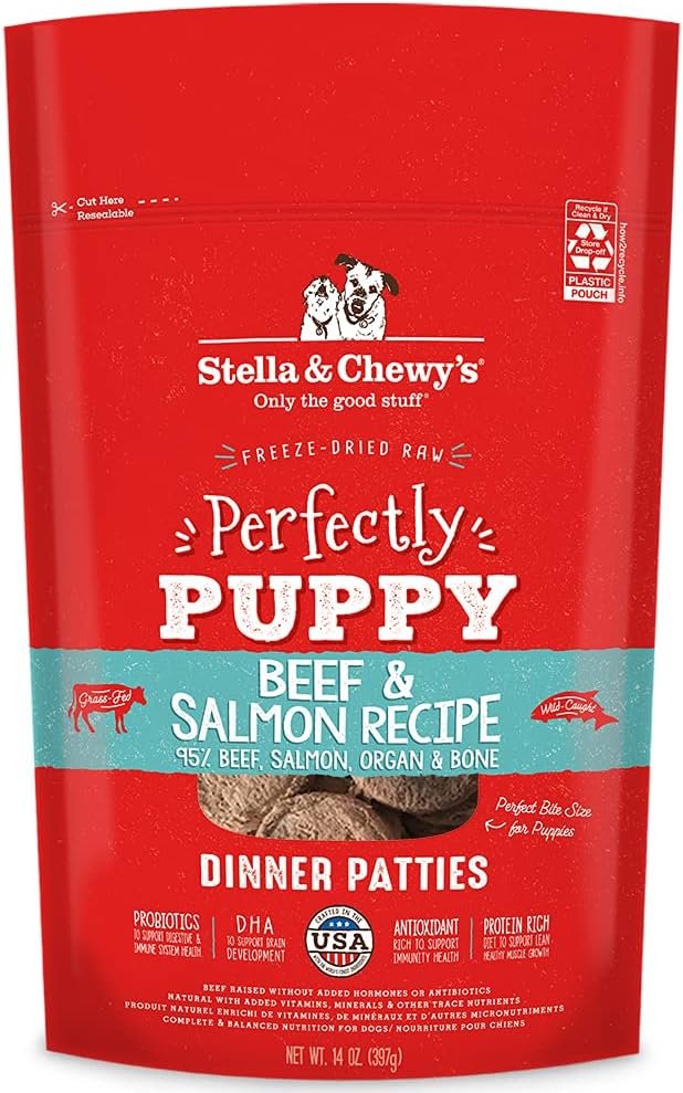 Irresistible Taste Dogs Love! Made of 95% salmon, beef, organs and bone; formulated specifically for puppies with DHA, Vitamin E and L-Carnitine to help aid body and brain development, our grass-fed Beef and wild-caught salmon recipe will delight your pup