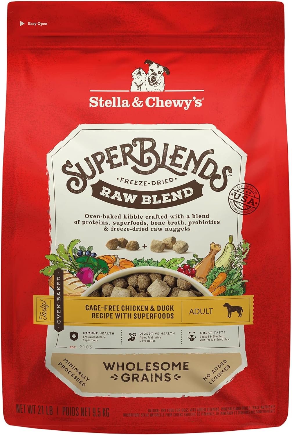 Superfood-Powered Kibble: Raw-coated, nutrient-packed, and crafted with a unique blend of responsibly sourced proteins, grains, and superfoods, SuperBlends help your dog thrive. Our Raw Blend recipes even have pieces of freeze-dried raw meat mixed right in for an extra protein boost.