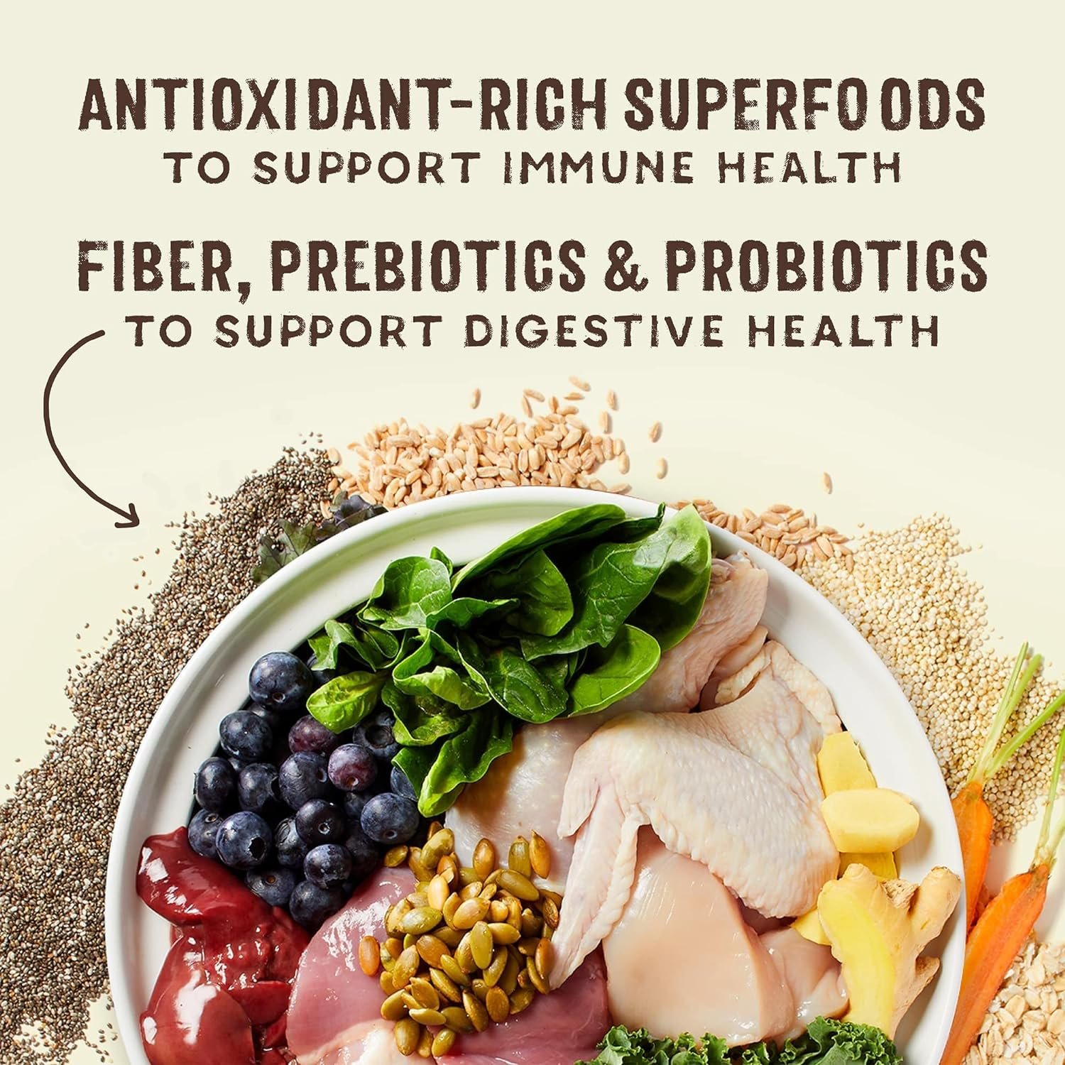 Gut and Immune Health: Antioxidant-rich superfoods, prebiotics, probiotics, and a unique blend of proteins all combine to support your dog’s immune and digestive health.