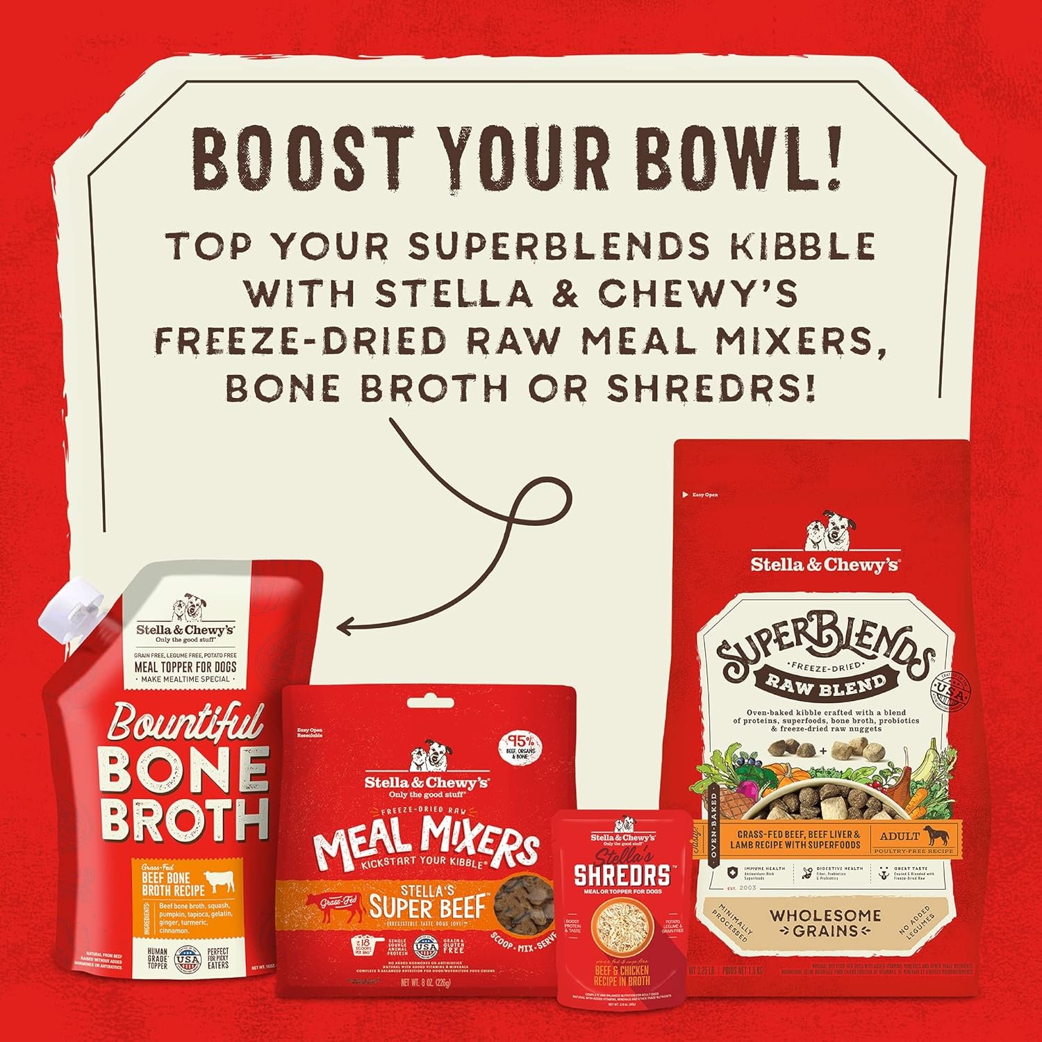 Delicious Taste, Guaranteed: Made with bone broth and raw-coated for maximum flavor, SuperBlends offer an irresistible taste that your pup is sure to love. Plus, all of our recipes are complete and balanced meals, giving your dog everything they need in one bag.