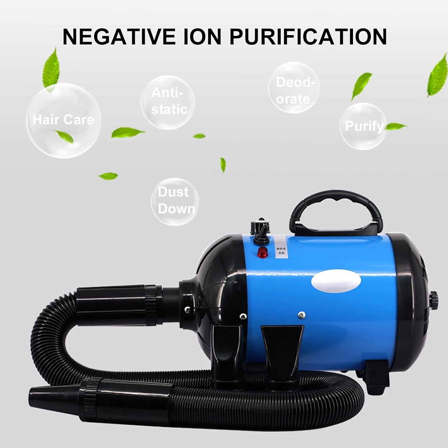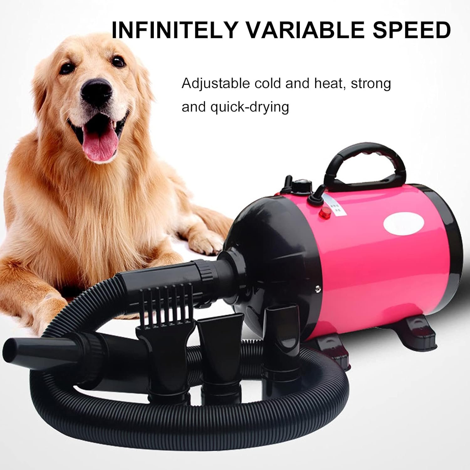 [ADJUSTABLE PET HAIR DRYER]: Adjustable temperature 30℃-60℃, stepless adjustable airflow speed 25M/S-65M/S. You can choose different wind speeds for your pet. Pet hair dries faster and damages less. Dog grooming hair dryers are suitable for all seasons