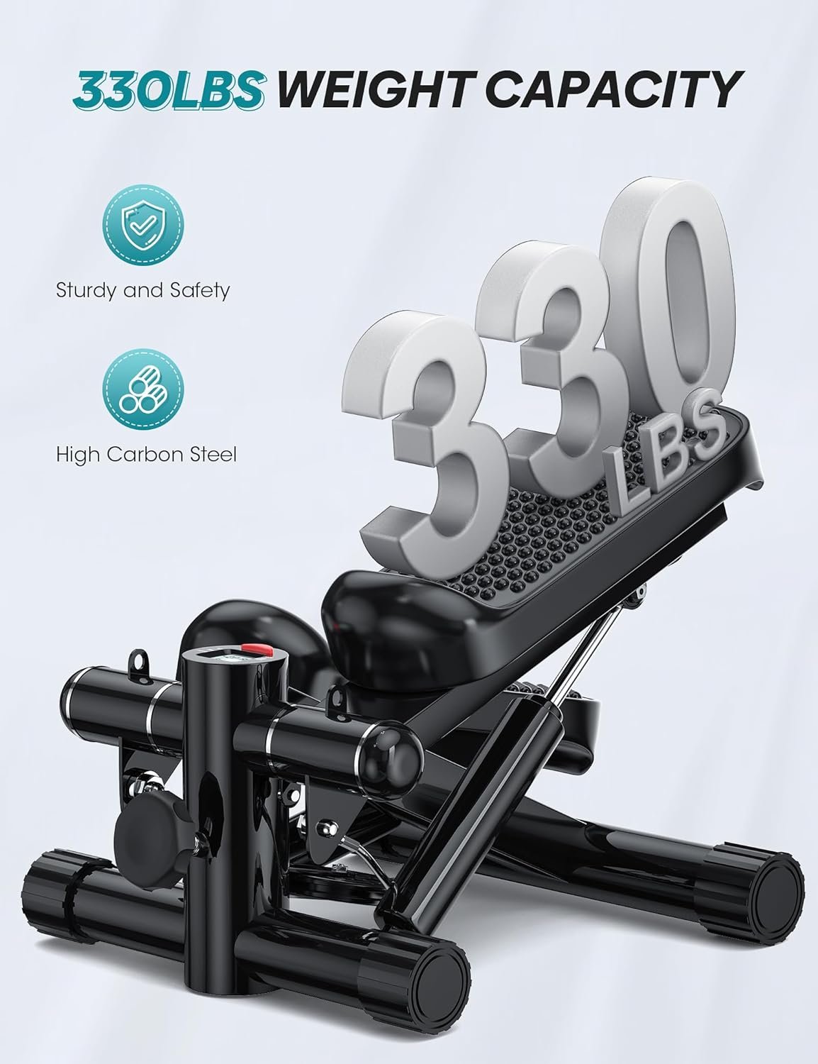 🔩【Sturdy Stability with 330LBS Capacity】 The loading structure of this steppers for exercise at home is made of 2MM thick commercial steel, which ensures a maximum load-bearing capacity of 330 pounds. Its anti-tipping design further reinforces stability, guarding against accidental falls, suitable for all weight groups for both men and women.