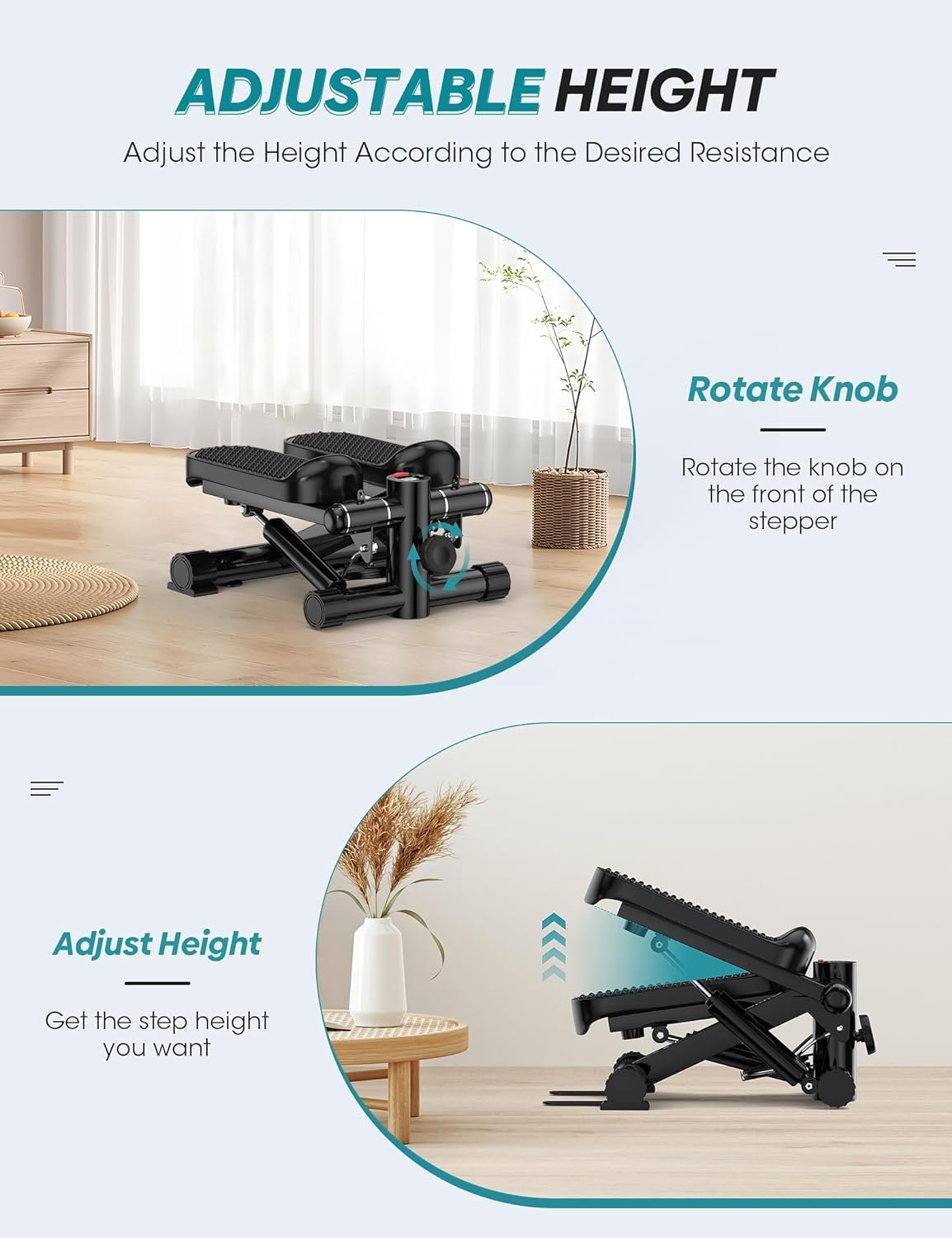 ⚙️【Adjustable Step Height】Arvnka stepper machine are equipped with height adjustment knob, you can adjust the step height according to your needs. With a low stride, it is easier to step and extend the duration; With a high stride, you can burn more calories.