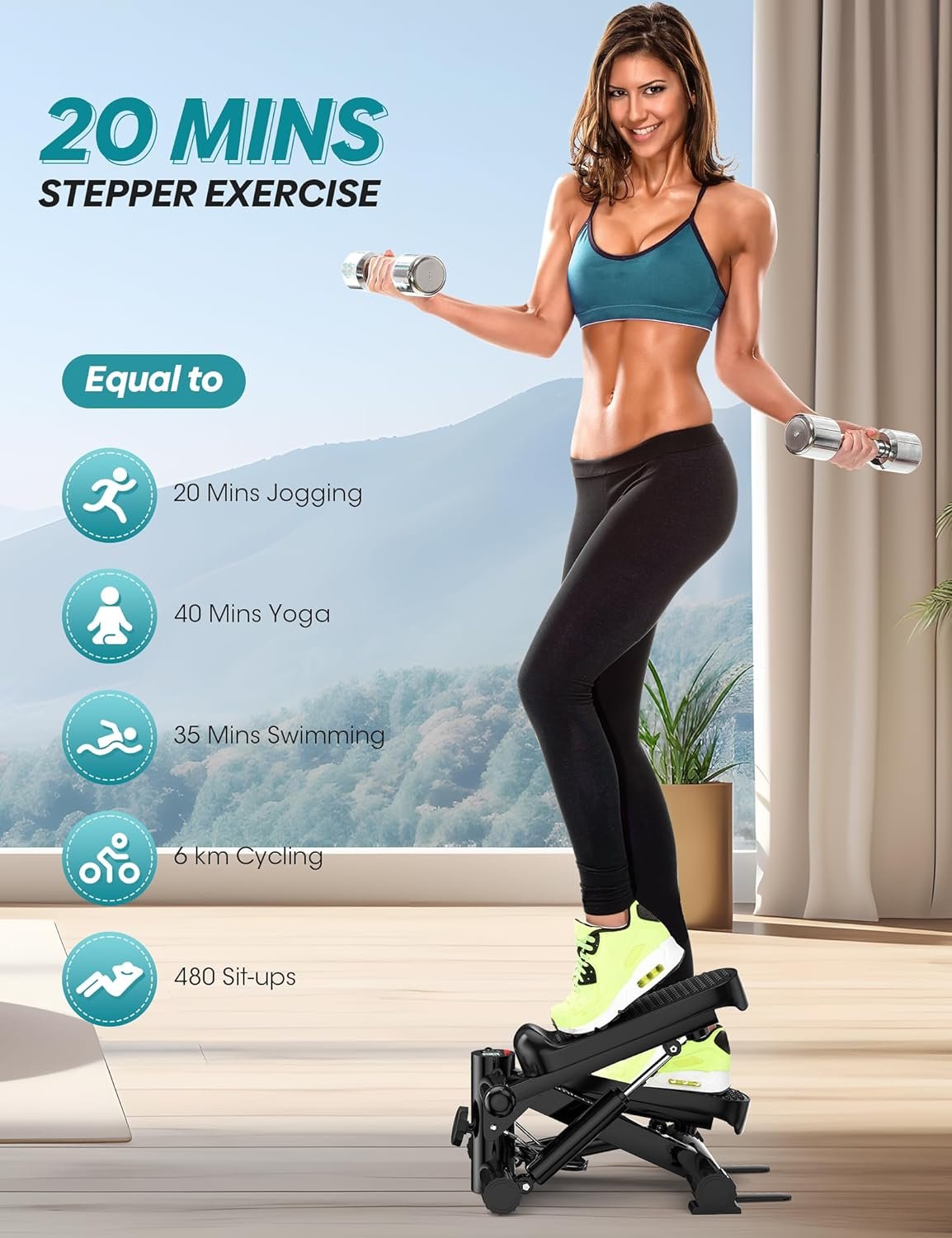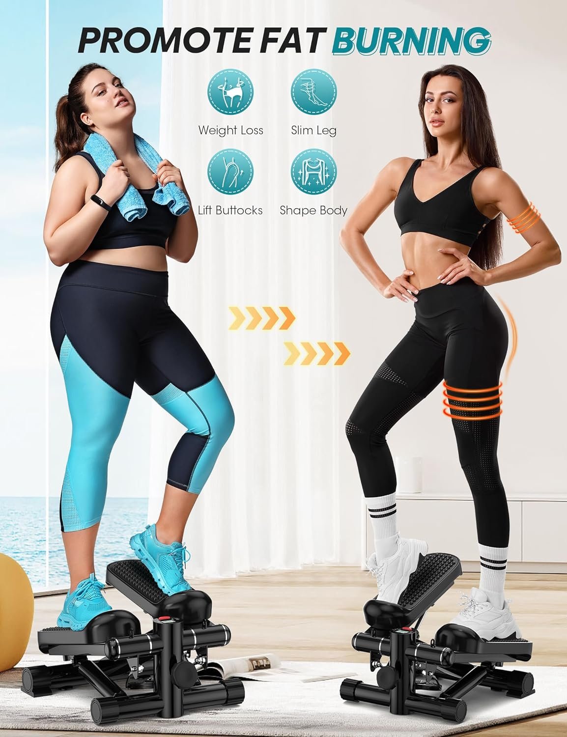 🏋️【Full Body Workout】Utilizing a mini stepper for a scientifically designed full-body workout enables comprehensive muscle engagement, efficient fat burning, and targeted toning of key areas including calves, thighs, glutes, abdomen, back, arms, and shoulders. This regimen aids in maintaining desired physique, enhancing confidence, and promoting overall health, all while safeguarding knee joints.
