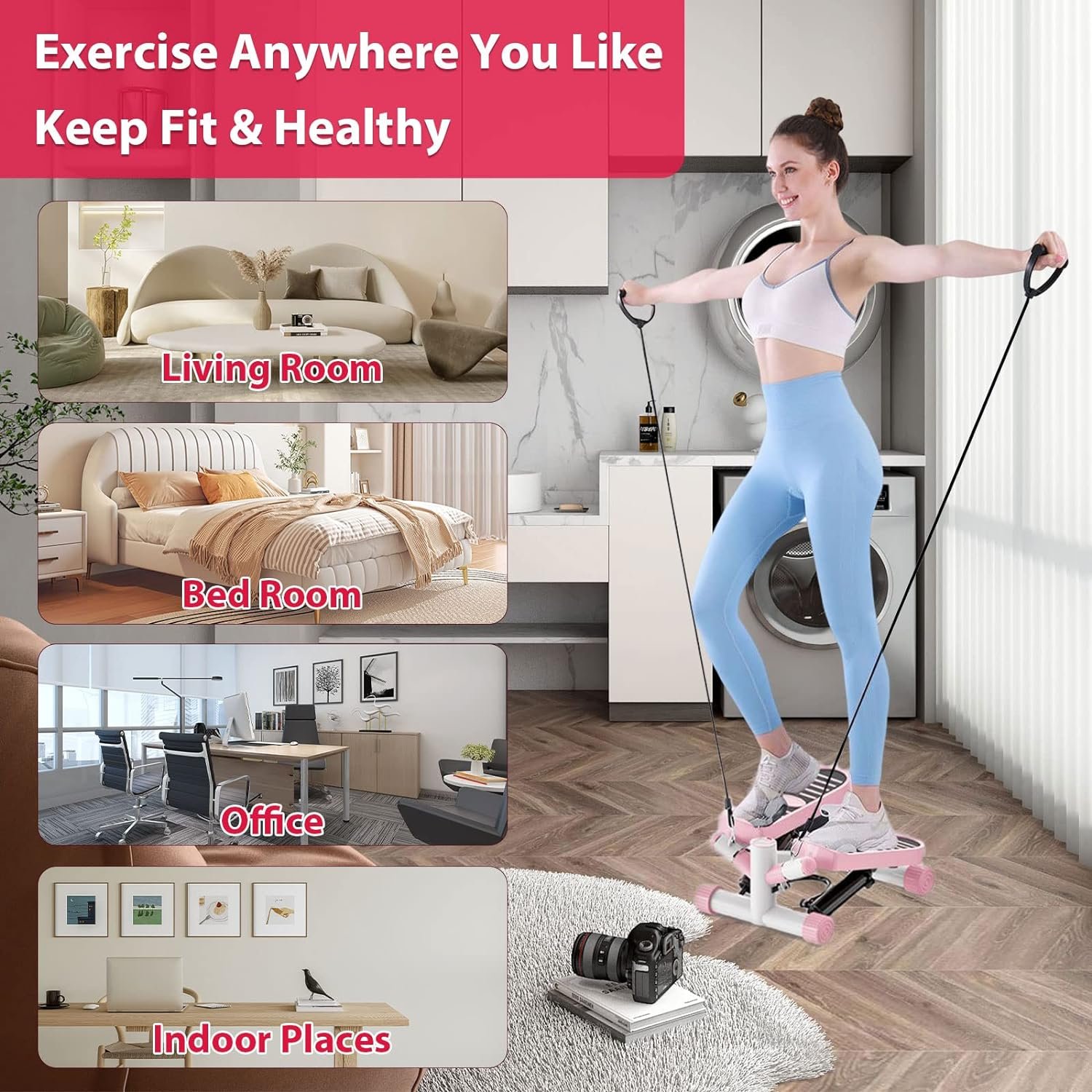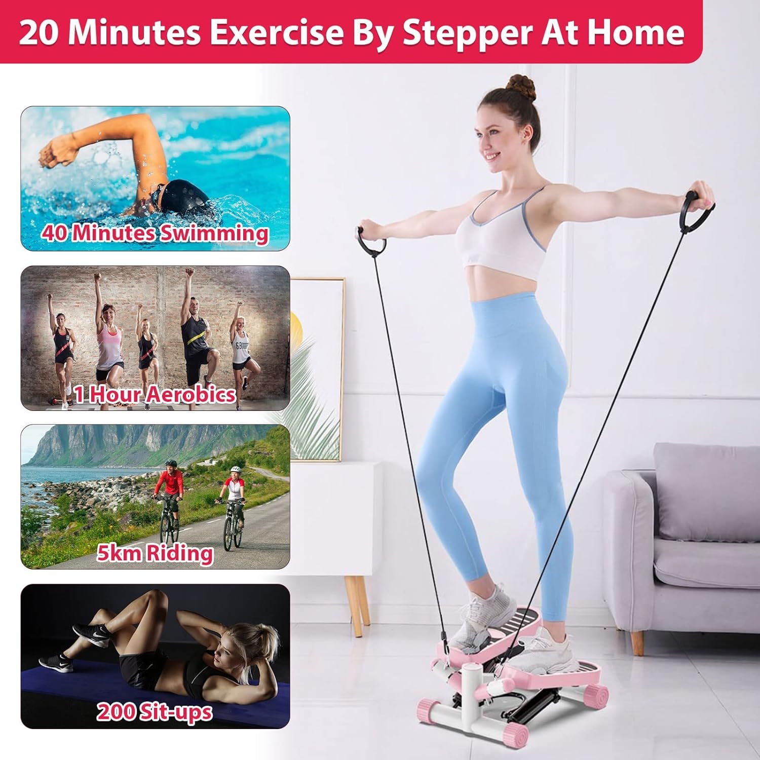 🏃♀️【Premium Material & Accessories】- The steppers for exercise is constructed with non-slip pedals, stronger steel wide bases that provide sturdy, quiet and smooth workout, Our stepper machine is equipped with resistance bands and no slip mat to help you perform your stepper workout more effectively and safely, The stepper help to stronger your legs, buttocks and abdomen, and the resistance band can strong arms, chest, back and shoulders;