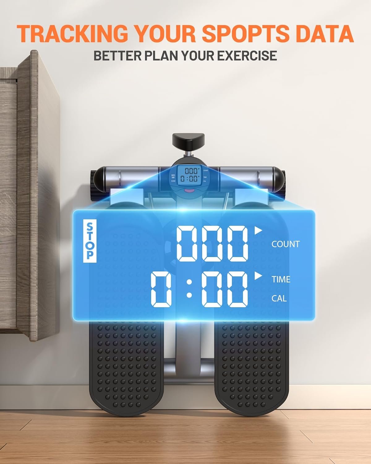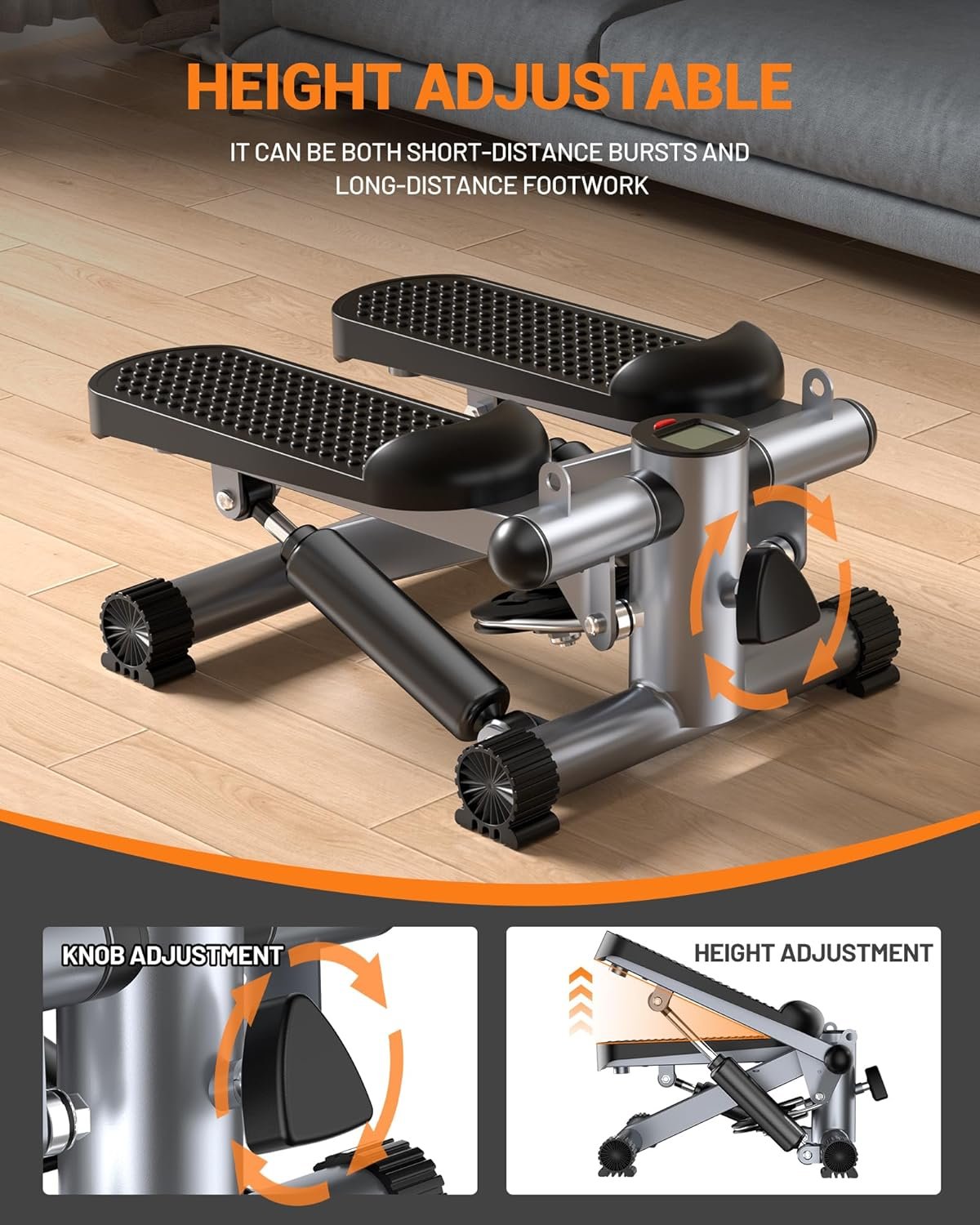 Convenient Height Adjustment: Our stepper features a more natural and convenient height knob design that allows you to quickly adjust the intensity of your training. This is different from other knob designs on the market that are mounted underneath the machine.The display on the stepper exercise equipment can record your exercise time, steps and total calorie consumption.