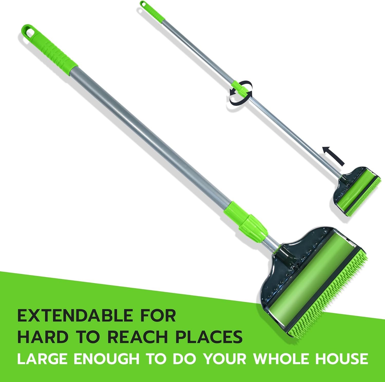Pro Broom with an extendable and retractable handle that allows you to use it around the house and in the car in many different ways.