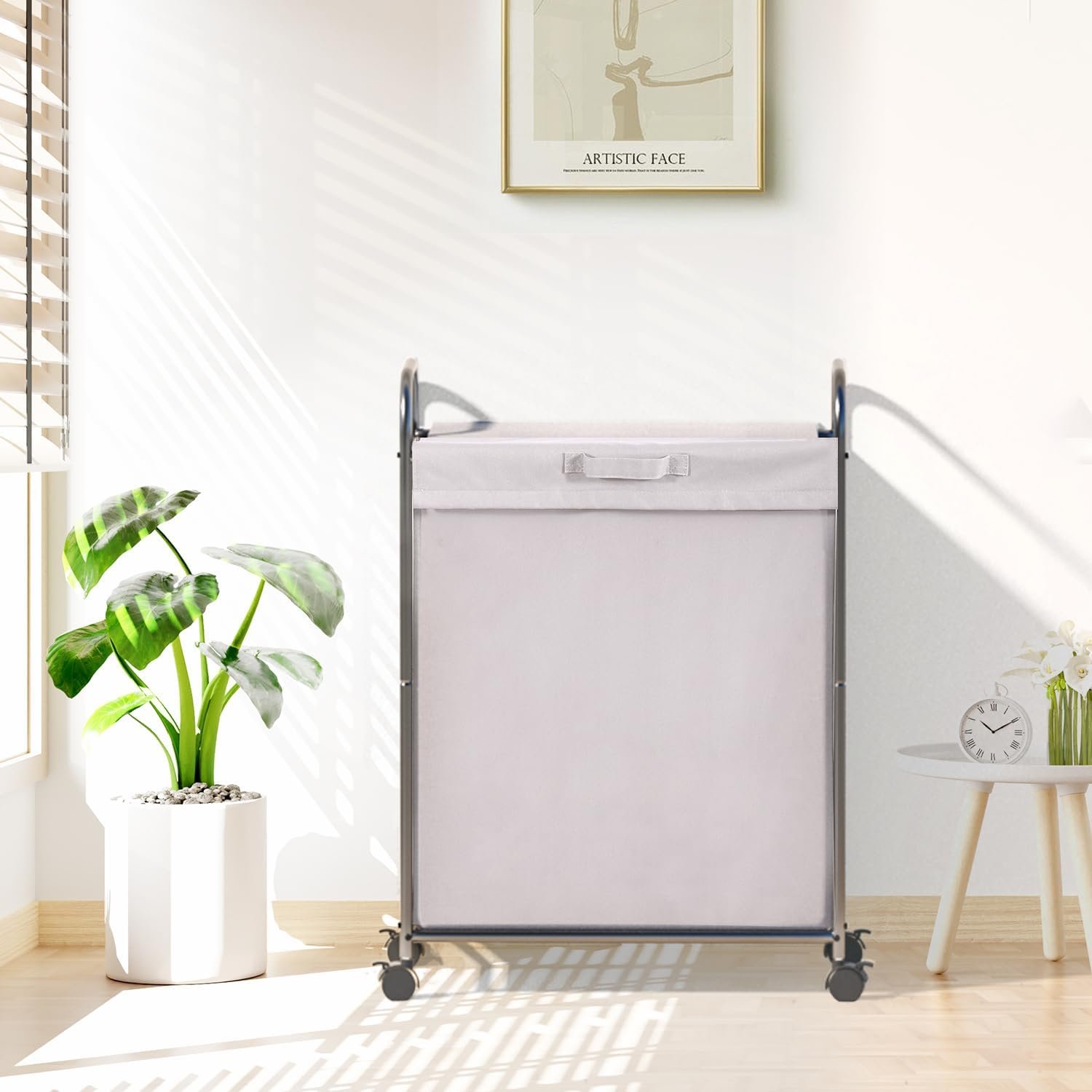 4 Rolling Wheels: The rolling laundry hamper has 4 heavy-duty casters that allow it to move freely, and 2 of the wheels are lockable to keep it in place.