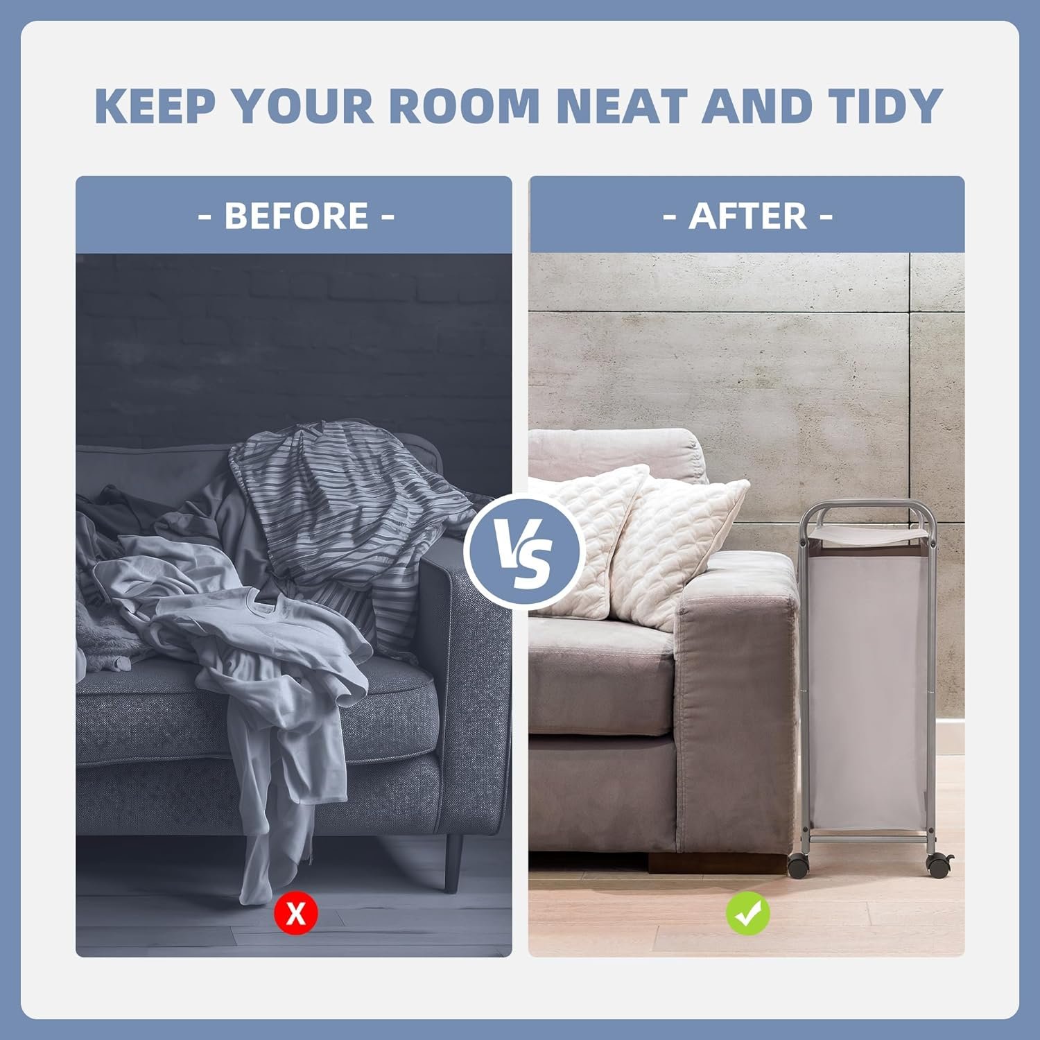 Large Capacity: The laundry sorter has a frame dimension of 21.65″ L x 11″ W x 30.7″ H. It provides a total capacity of 85 L, which is about 2 loads. Equipped with a cover to prevent dust and protect privacy.