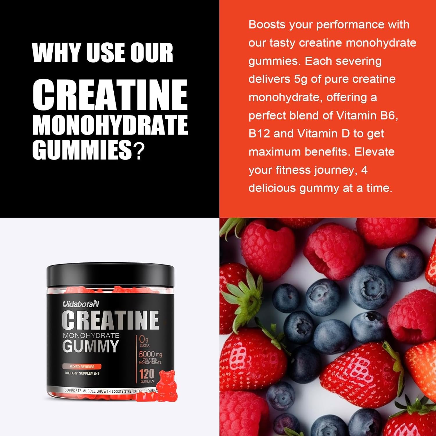 [Enjoyable Experience]: Vidabotan creatine monohydrate gummies offer a superior taste experience with a soft, non-sticky texture that won’t stick to your teeth, ensuring maximum enjoyment with every bite.