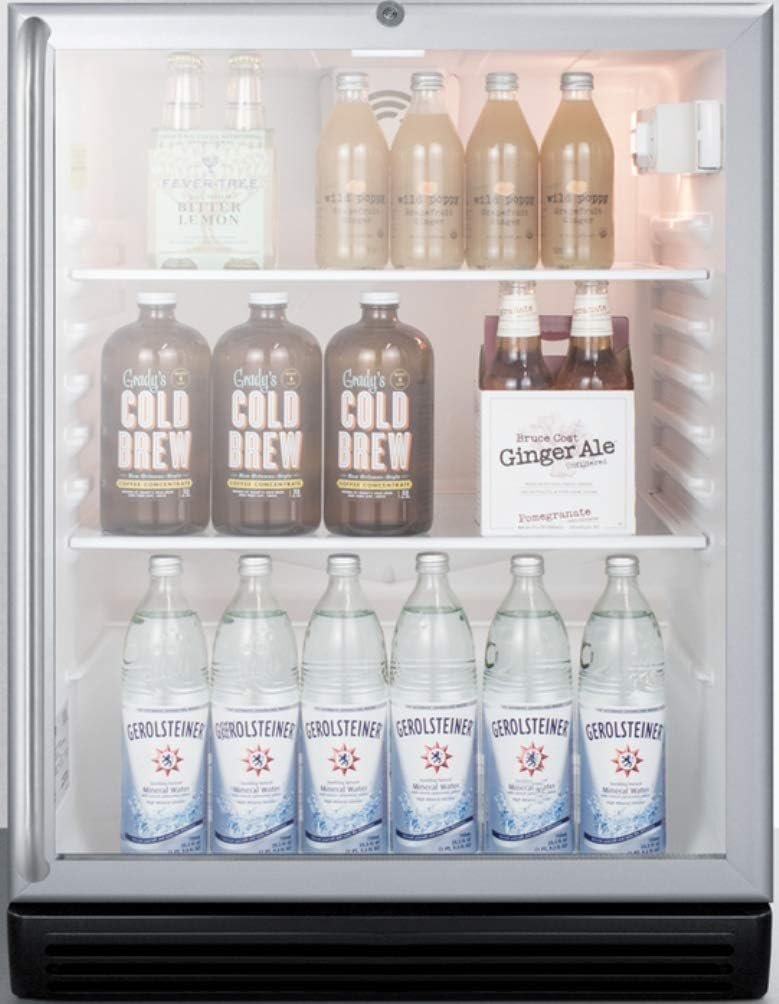 Summit Appliance SCR600BGLSHADA Commercially Listed ADA Compliant 5.5 Cu.Ft. Freestanding Beverage Center with Glass Door, Auto Defrost, Full-Length Towel Bar Handle, Lock and Black Cabinet