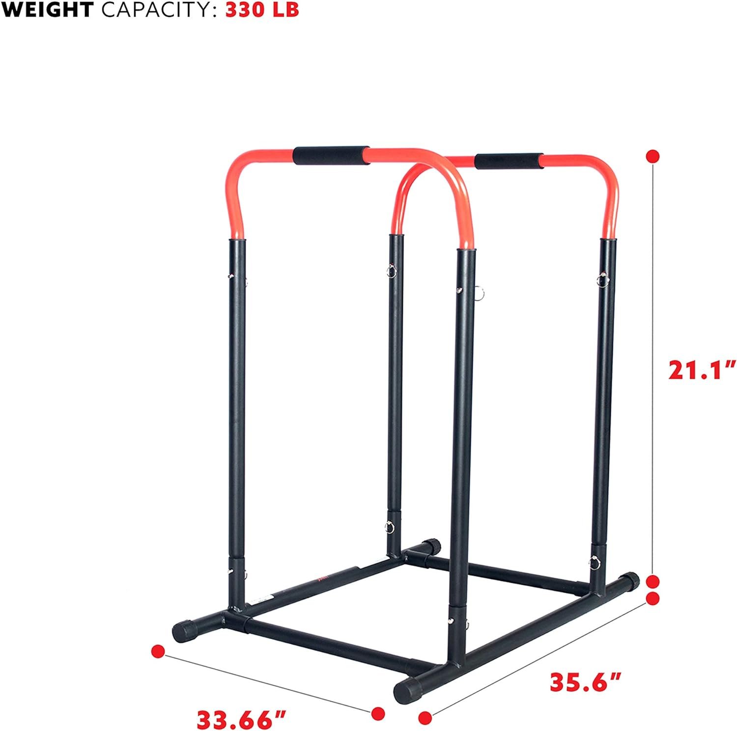 HIGH WEIGHT CAPACITY: Superior build quality and durable steel construction allow this dip stand to carry a max weight capacity of 330 lb.