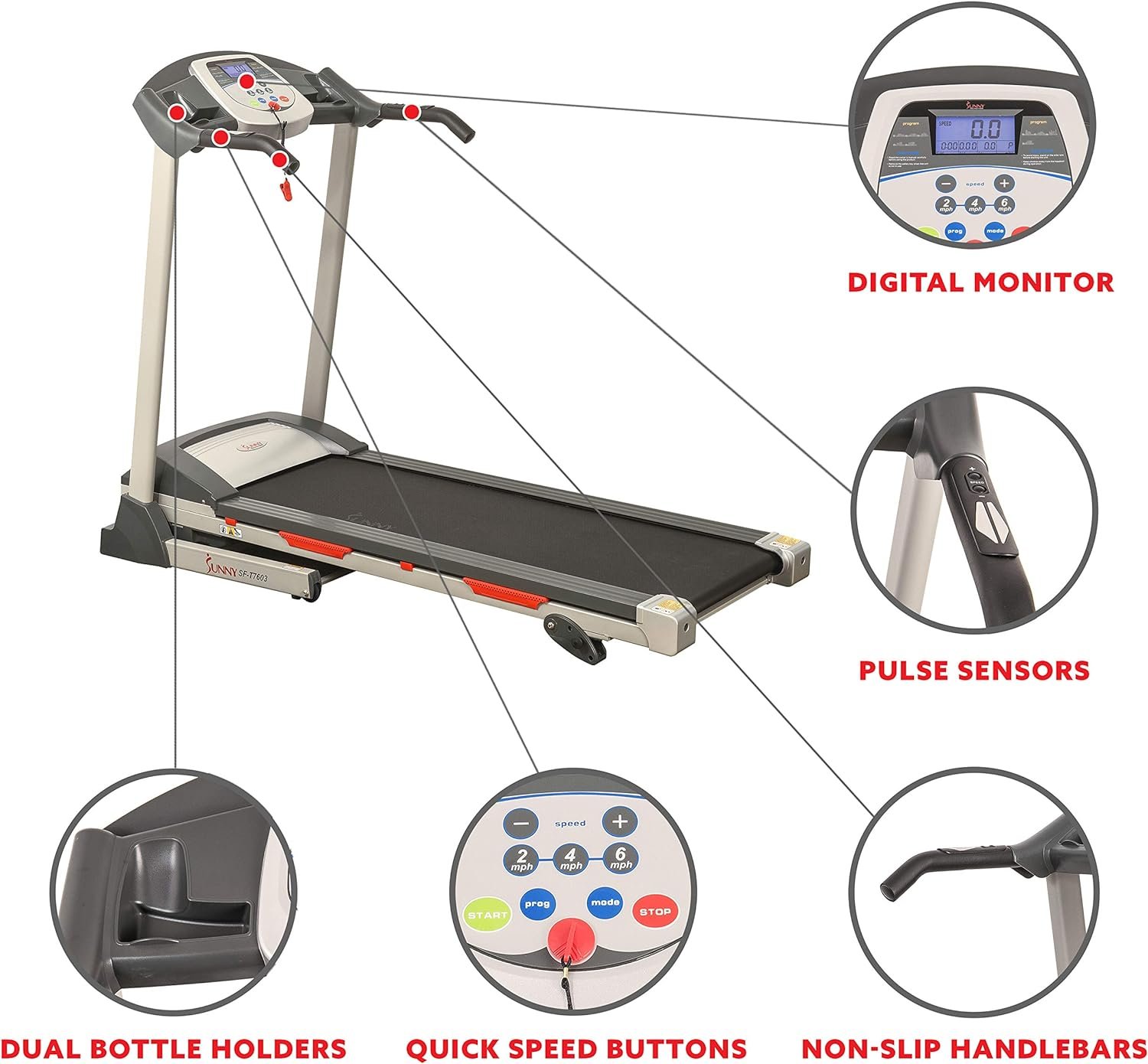 STURDY, QUIET & HIGH QUALITY: Solid steel construction with extra shock absorption system makes your indoor run or walk a steady and effective cardio workout while getting the best value from the Sunny treadmills