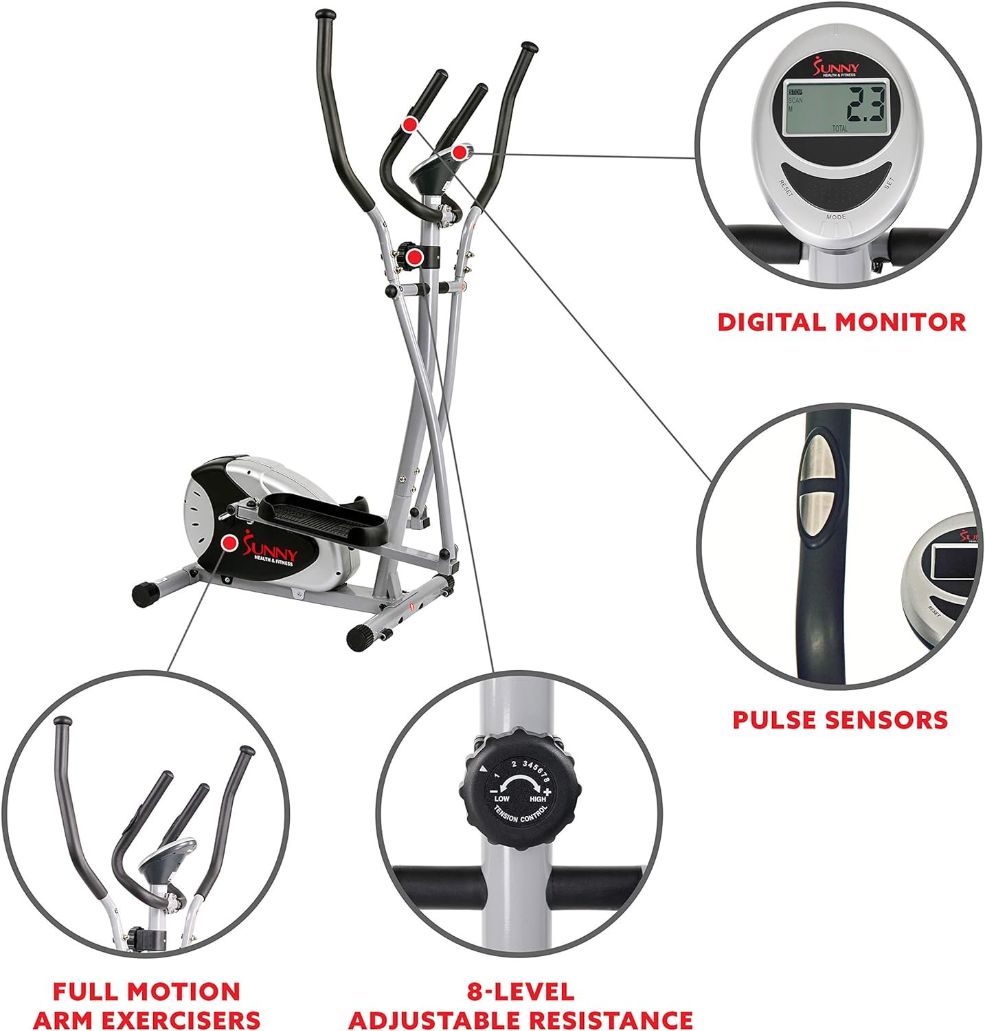 Sunny Health & Fitness Legacy Stepping Elliptical Machine, Total Body Cross Trainer with Hyper-Quiet Magnetic Belt Drive, Low Impact Exercise Equipment SF-E905 + Home Gym Foam Floor Protector Mat