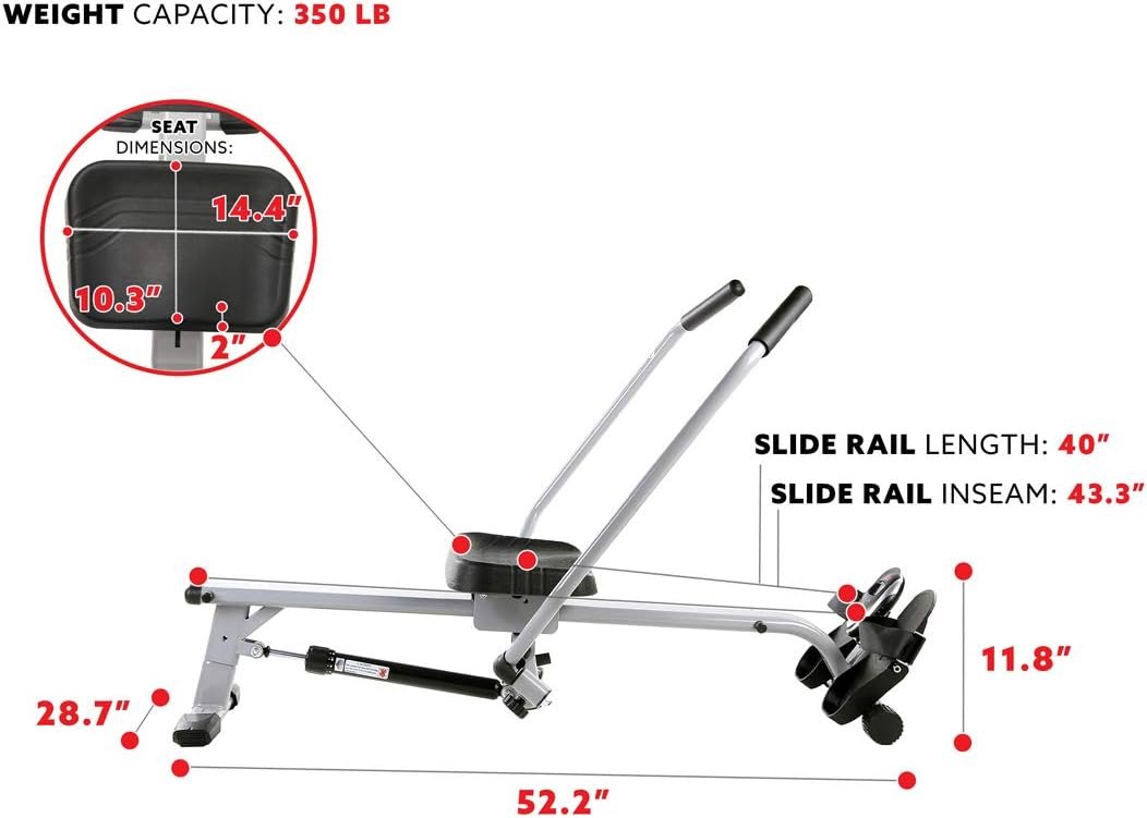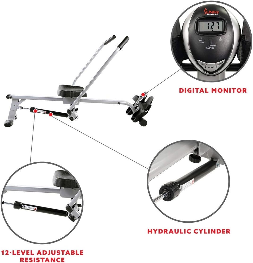 Sunny Health & Fitness Smart Compact Full Motion Rowing Machine, Full-Body Workout, Low-Impact, Extra-Long Rail, 350 LB Weight Capacity and Optional SunnyFit® App Enhanced Connectivity