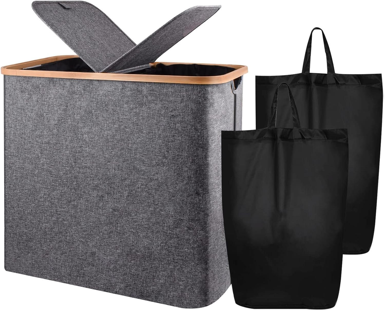 【2 Compartments with Individual Removable Laundry Bags】Two convenient sections allow you to sort laundry beforehand. Separate light and dark clothes, home and work clothes and undergarments easily. Saving your time to separate clothes easily while washing them. It comes with 2 individual removable laundry bags with 2 handles which are easy to carry to the laundry, without moving the whole bin