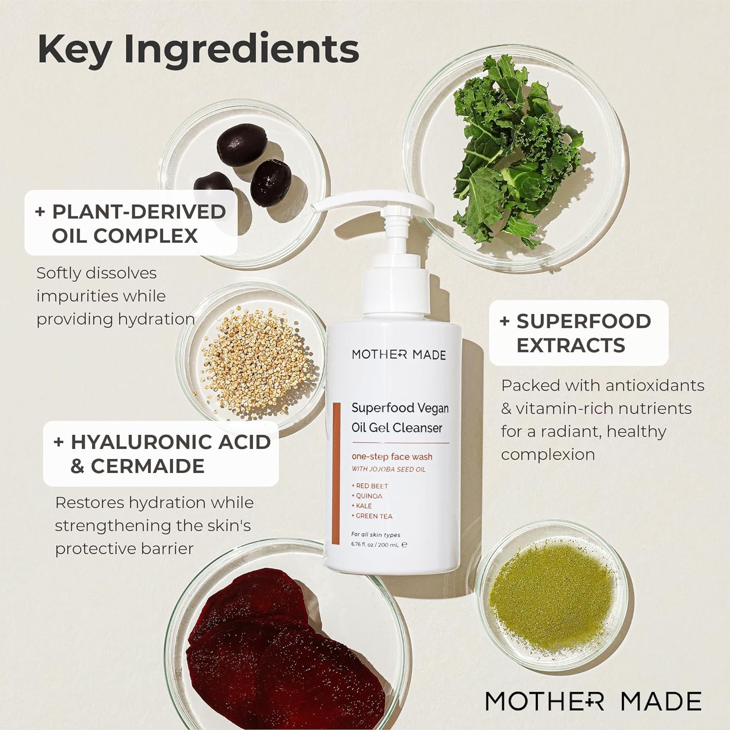 We create clean & vegan skincare with skin-healthy natural ingredients backed by cosmetic science for active results. Founded in 2014, MOTHER MADE strives to develop our own, unique vegan formulas, manufacture products only at GMP-certified facilities in South Korea, and provide versatile skincare rituals using our products.