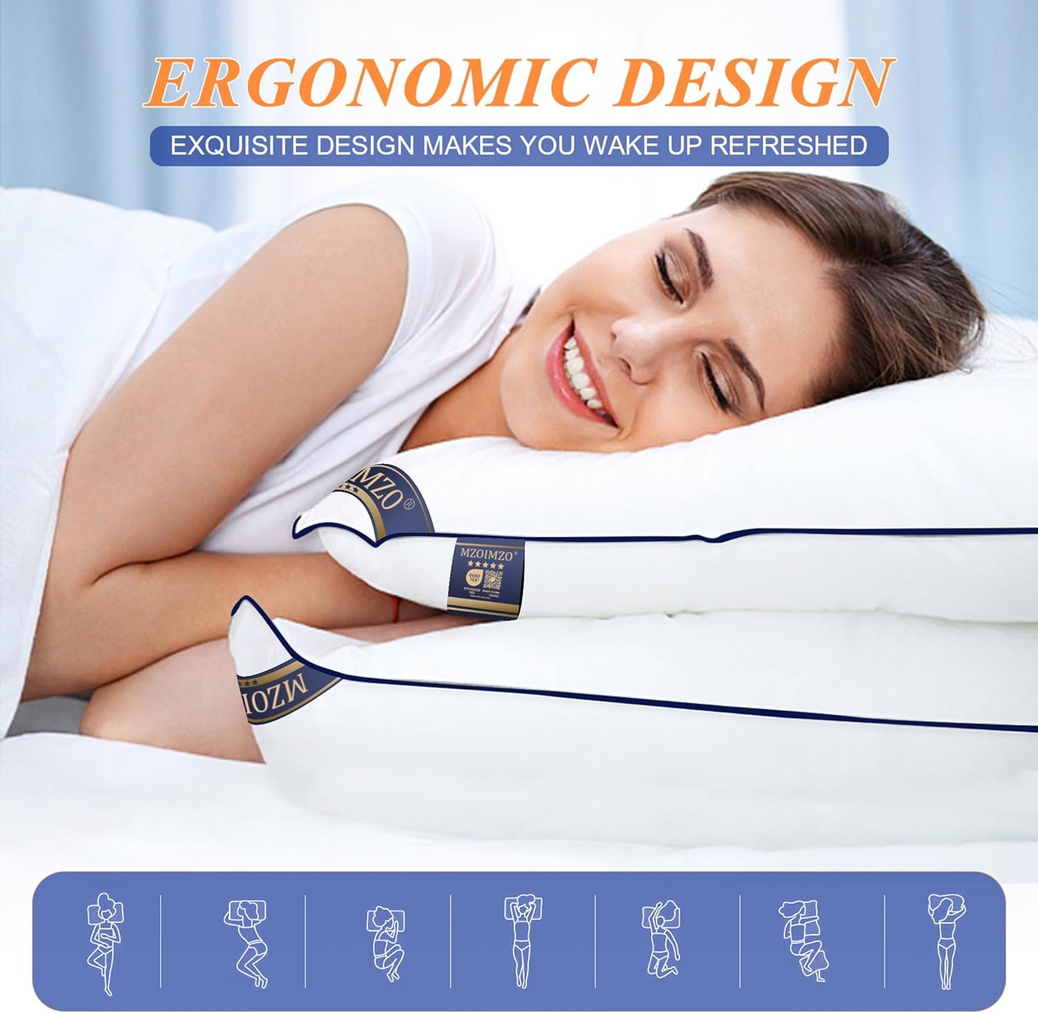 Fluffy yet Supportive: Our set of 2 standard bed pillows strike the perfect balance between softness and firmness. They offer optimal support to reduce neck pain and alleviate shoulder stiffness, ensuring a restful sleep.