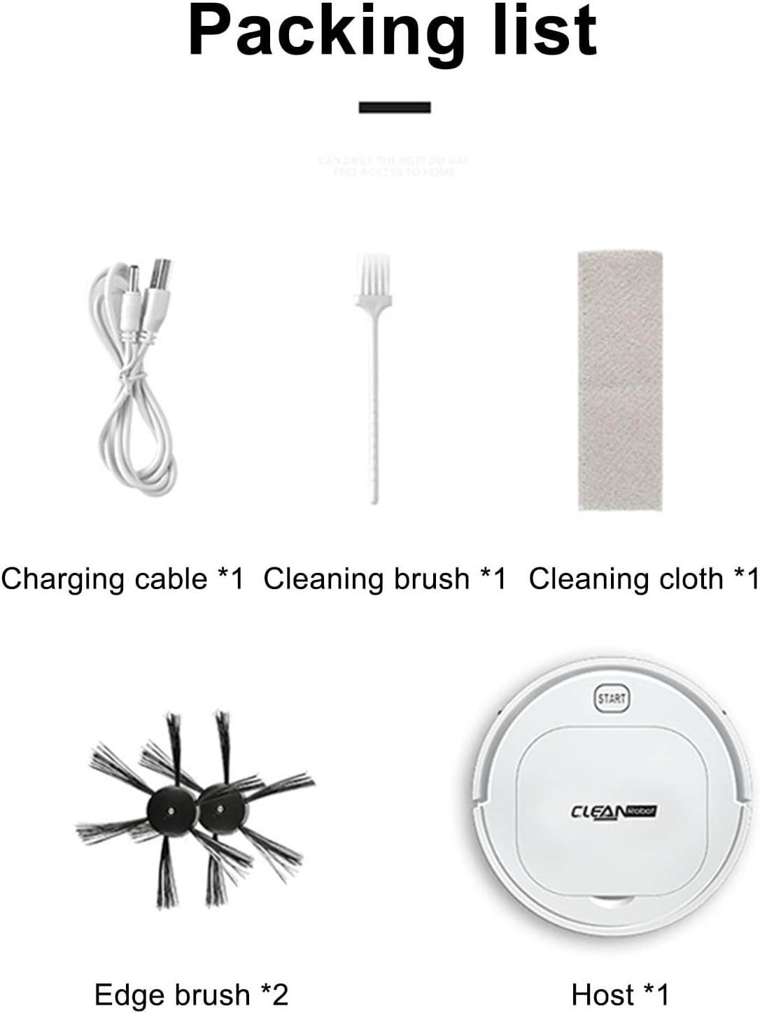 Include:1× host, 2× side brushes, 1× charging cable, 1× cleaning brush, 1× cleaning cloth