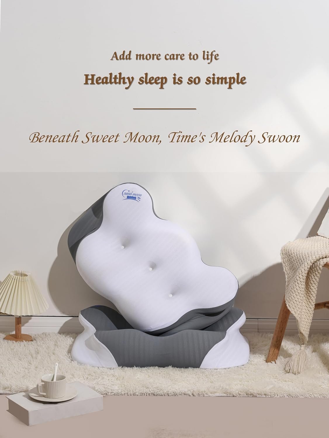 【Ease Pain and Snoring, Embrace Beautiful Sleep】After countless experiments and long-term use, SWEET MOON has indeed improved the sleep experience of many people: its good structure not only alleviates problems such as headaches and neck stiffness, but also allows for smoother breathing under the traction of the pillow’s cervical spine, relieving snoring and greatly improving sleep quality. Very suitable for students, home leisure, office workers, and the elderly. Note:The pillows is not for medical use. If you have sleep disorders, please consult your doctor.