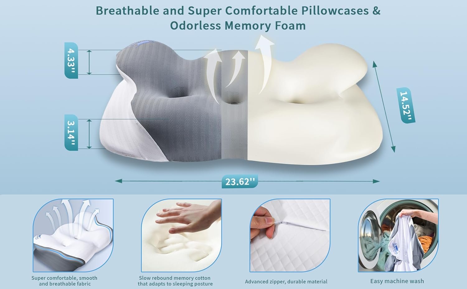 【Dream Cloud Pillow Create Comfortable And Dreamy Sleep Experience】Imagine lying on a fluffy and soft cloud, feeling its gentle wrapping around your head and neck, taking you into one wonderful dream afteranother. This is not a fantasy, but a real experience brought to you by the “Sweet Moon” cloud Contour memory cotton cervical pillow——Through in-depth research and careful crafting, our ergonomic pillow can provide excellent support for your head, neck, shoulders, and back. Its innovative design allows the pillow to naturally fit your spinal curve, providing just the right support for your spine and keeping you comfortable when changing sleeping positions.