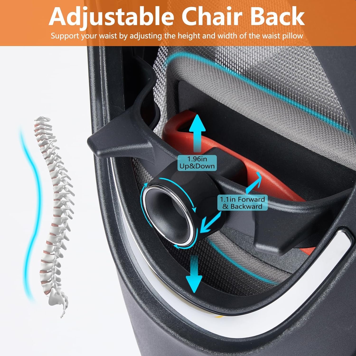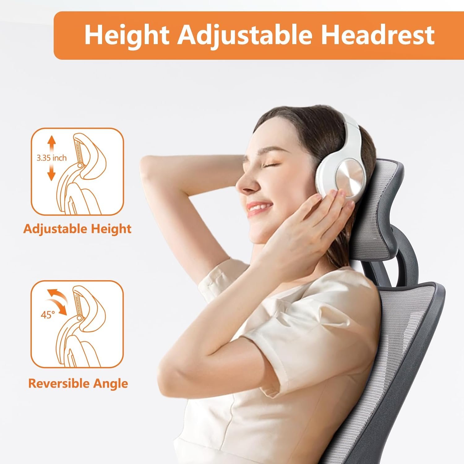 【Adjustable Headrest & Lumbar Support】The headrest of this ergonomic home office chair is adjustable in height and 45° angle to meet the needs of work and relaxation. The soft lumbar support can be adjusted up and down, front and back freely to fit the lumbar area more closely and relieve the fatigue of sitting for a long time.