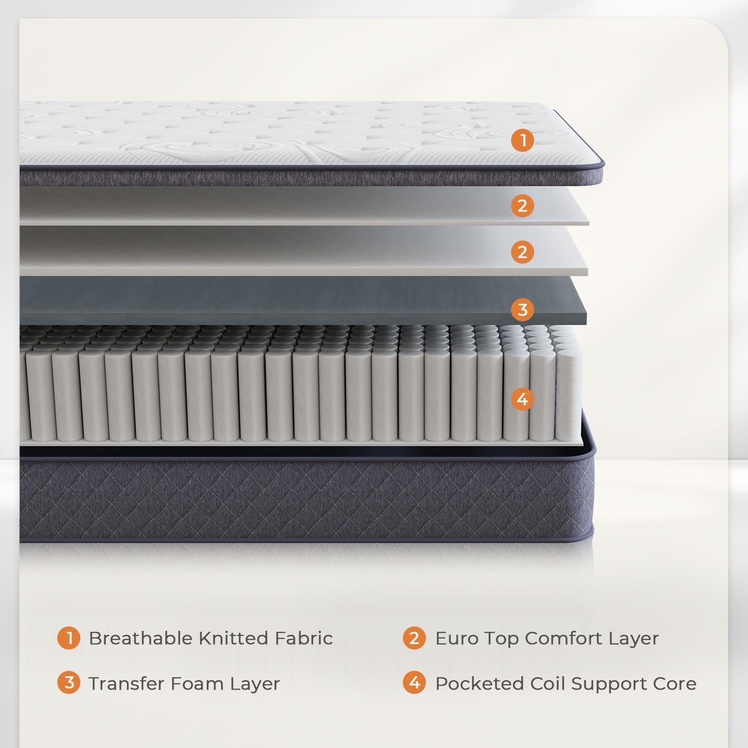 -The extra euro top layers to enhance the cushion of a mattress, help to relive pressure.
