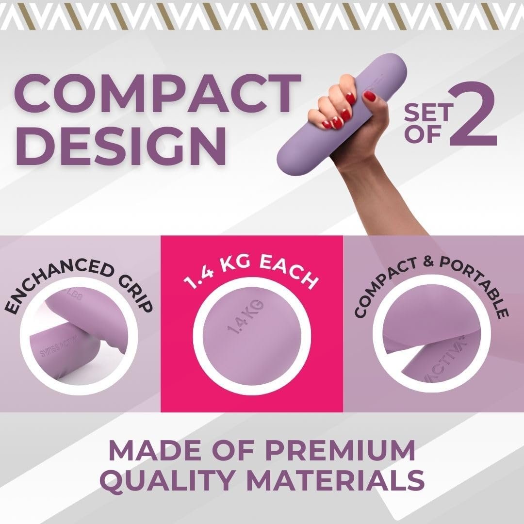 Complete Your Home Gym: Enhance your home workout with our 3 lb hand weights. Their small size makes them easy to store, making them a great choice for any home gym. Pair with our other Swiss Activa+ fitness equipment for the best results.