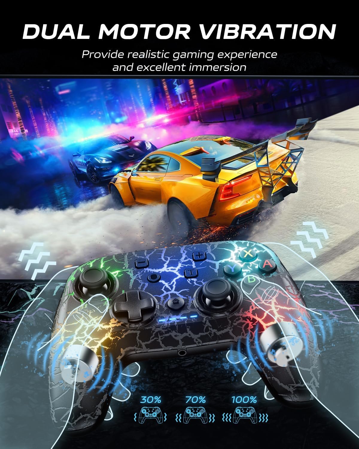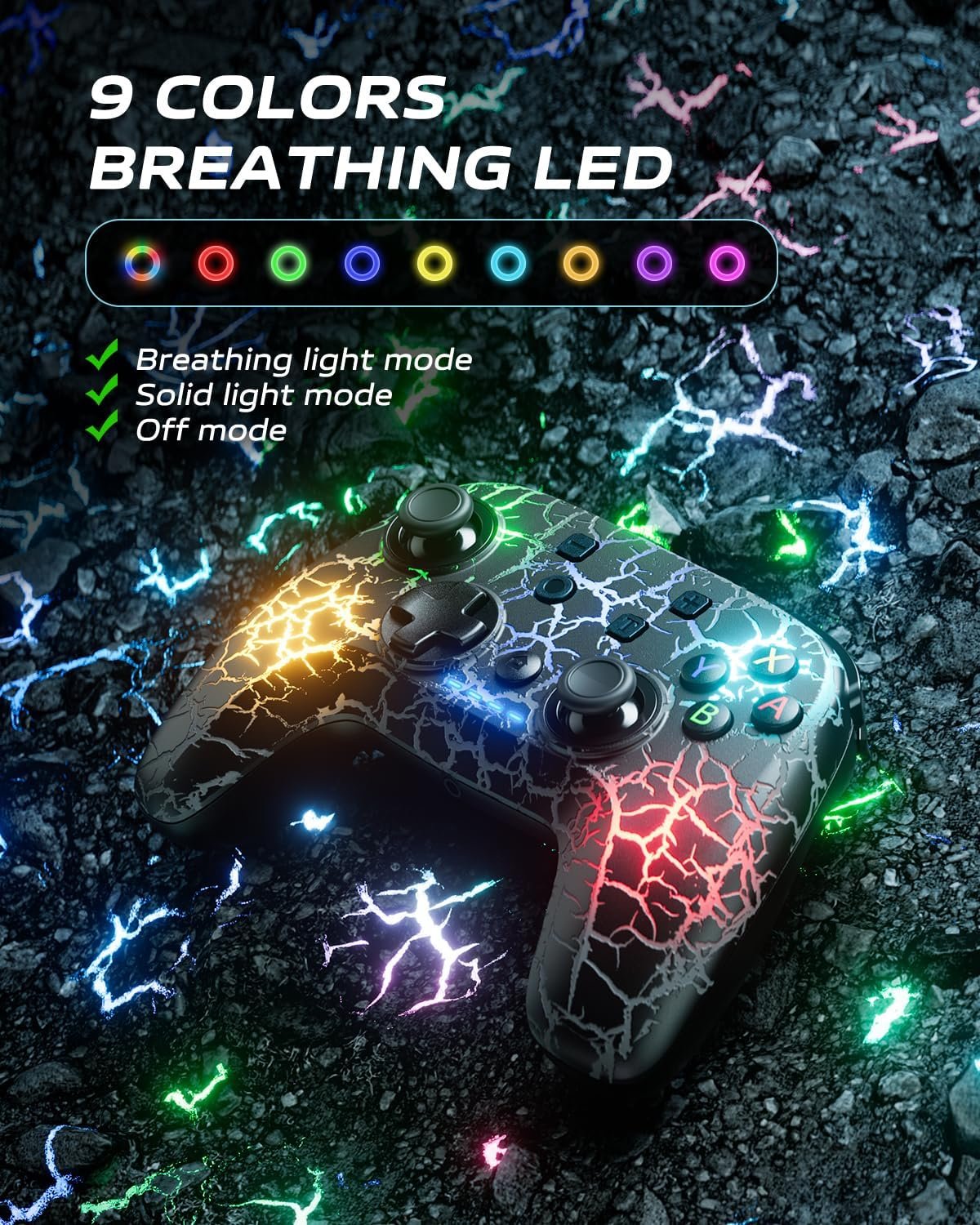 ๐ฎใ๐๐ฑ๐๐๐ฅ๐ฅ๐๐ง๐ญ ๐๐ซ๐๐๐ค๐ฅ๐ ๐๐๐ฌ๐ข๐ ๐งใWith the unique crackle RGB lighting design of the Switch Pro controller, you can switch between multiple LED modes (always on/breathing/RGB) at any time to enhance the atmosphere of your SWITCH adventure!
