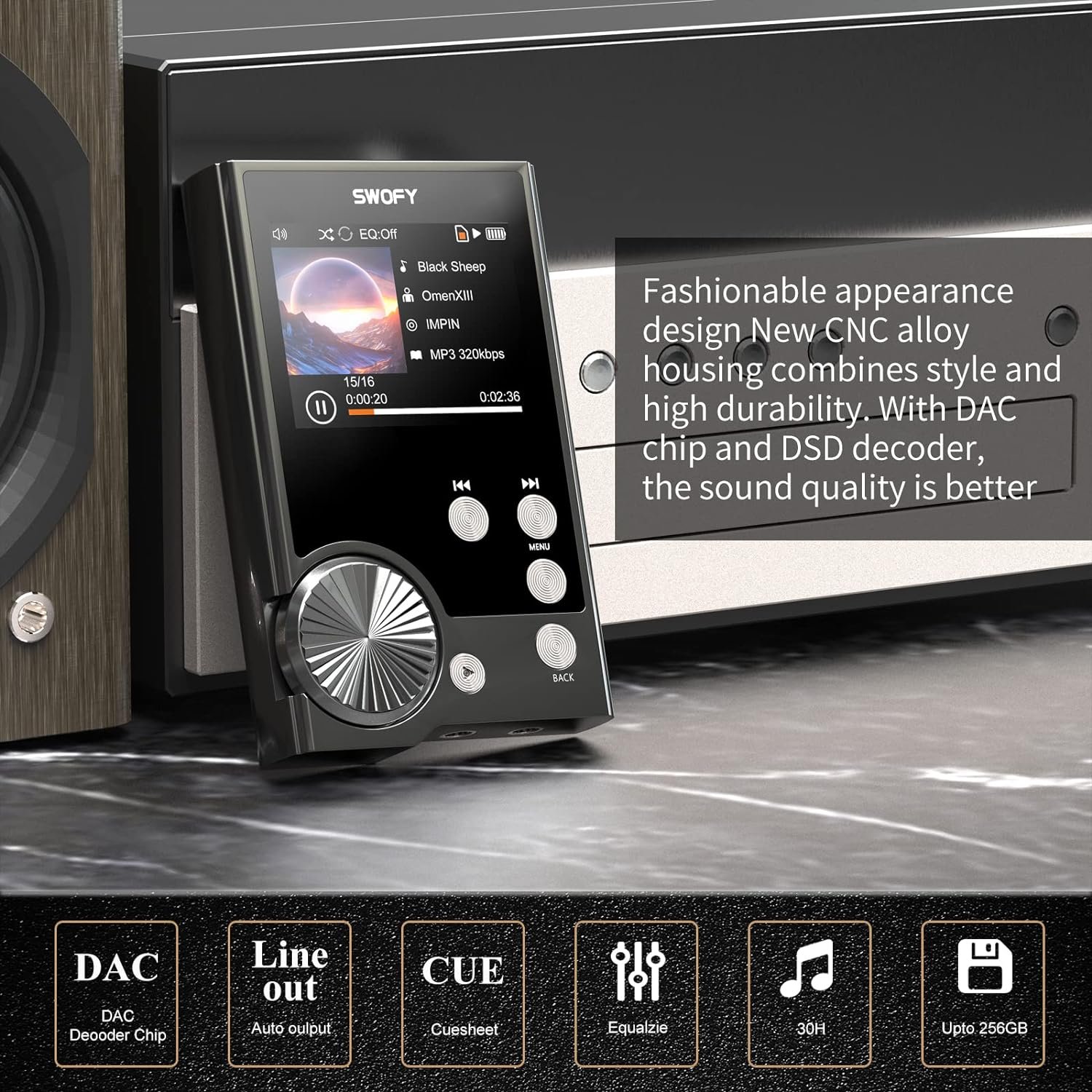 ✔【High Resolution Music Player】: Swofy-M8 MP3 player has excellent audio performance with professional DSD audio decoding , effectively restoring real scenes and reducing distortion; HD audio player captures the depth and breadth of each note. (Please note: use professional wired headphones and speakers)