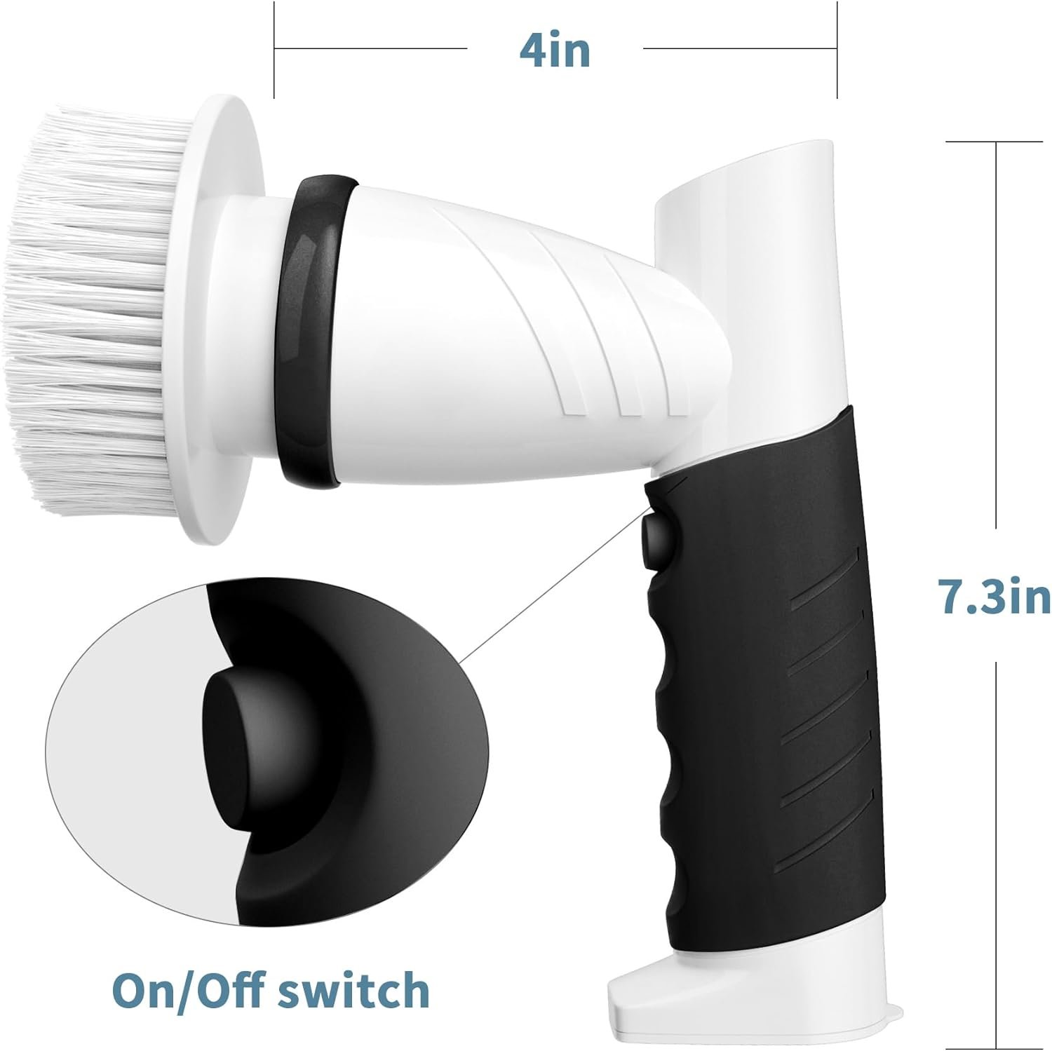 🤨【 Portable Electric Cleaning Brush】The Portable new cordless handheld electric brush is ergonomically designed, portable, lightweight, comfortable to hold and easy to clean. Get rid of the troubles caused by the entanglement of the traditional power cord, you can clean it anytime and anywhere without dragging the power cord. Save your time and clean easily and effectively. Textured silicone grip provides a firm grip even with wet hands.