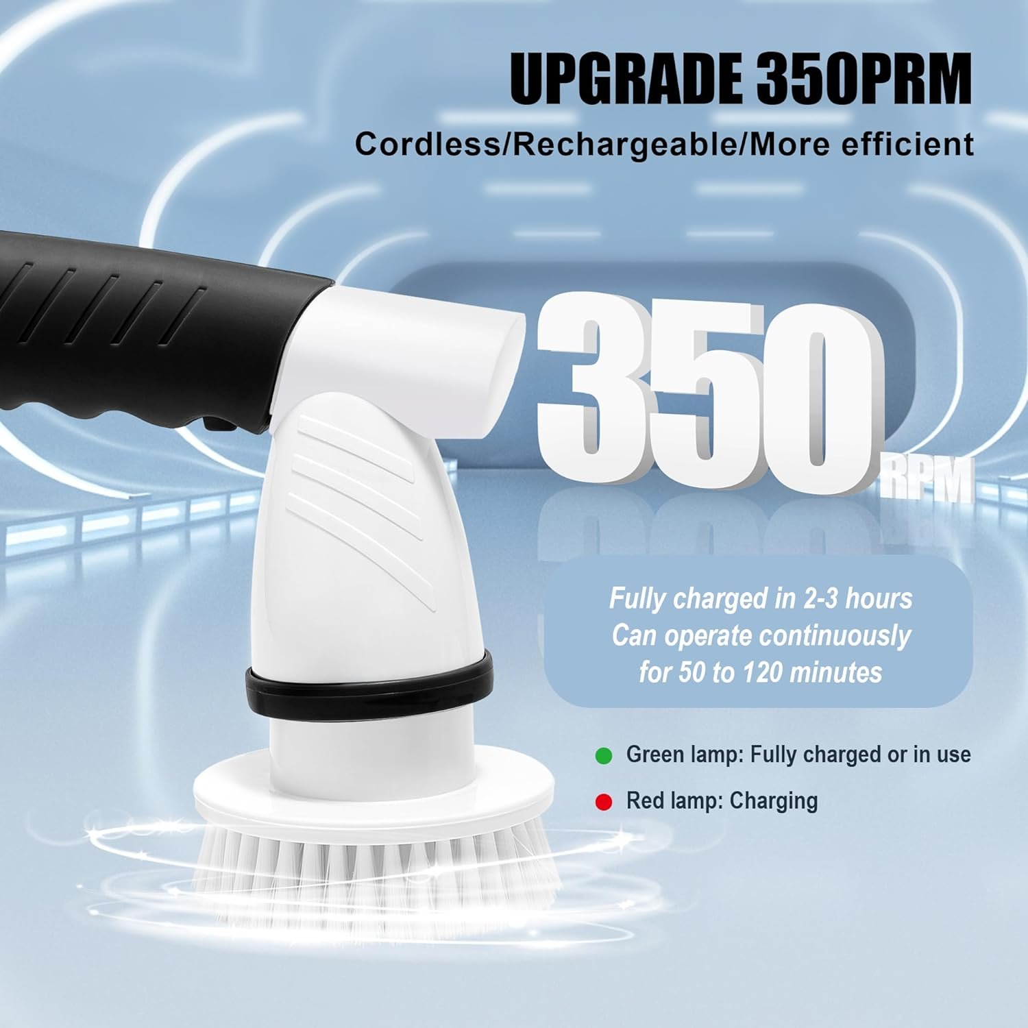 🤔【Make Cleaning Easier】This powerful rechargeable electric scrubber has a speed of up to 350r/min, which can save half of the cleaning time, allowing you to easily and effectively clean stubborn stains and dirty spots, and care for your knees and back. Be your unique cleaning helper, it is very suitable for use in small spaces, such as bathrooms, cabinets, etc.