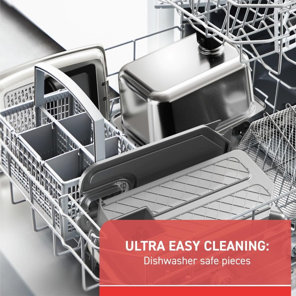 Ultra easy cleaning: Our deep fryer comes with dishwasher-safe components including the cooking basket, bowl, lid, and oil box. Experience the convenience of professional deep-frying at home with the T-Fal EZ Clean Compact!