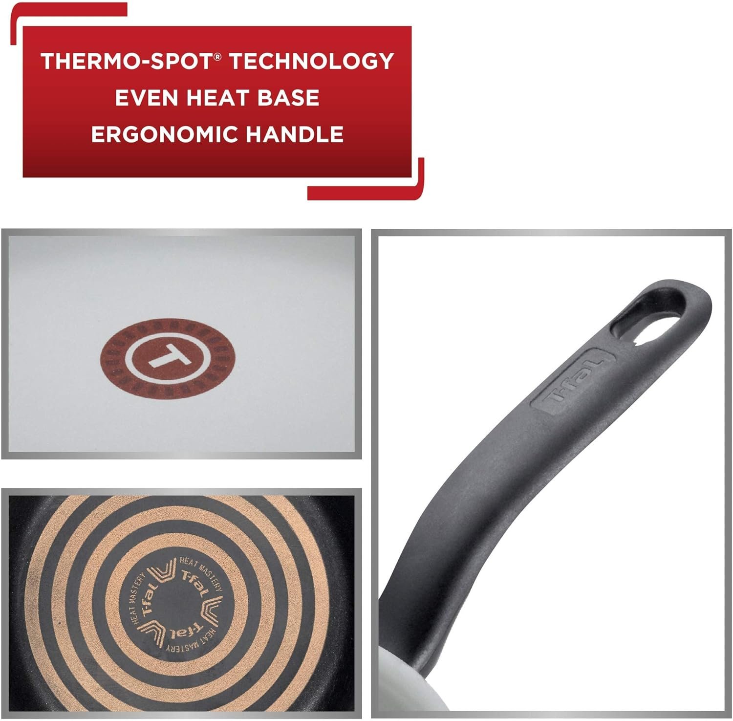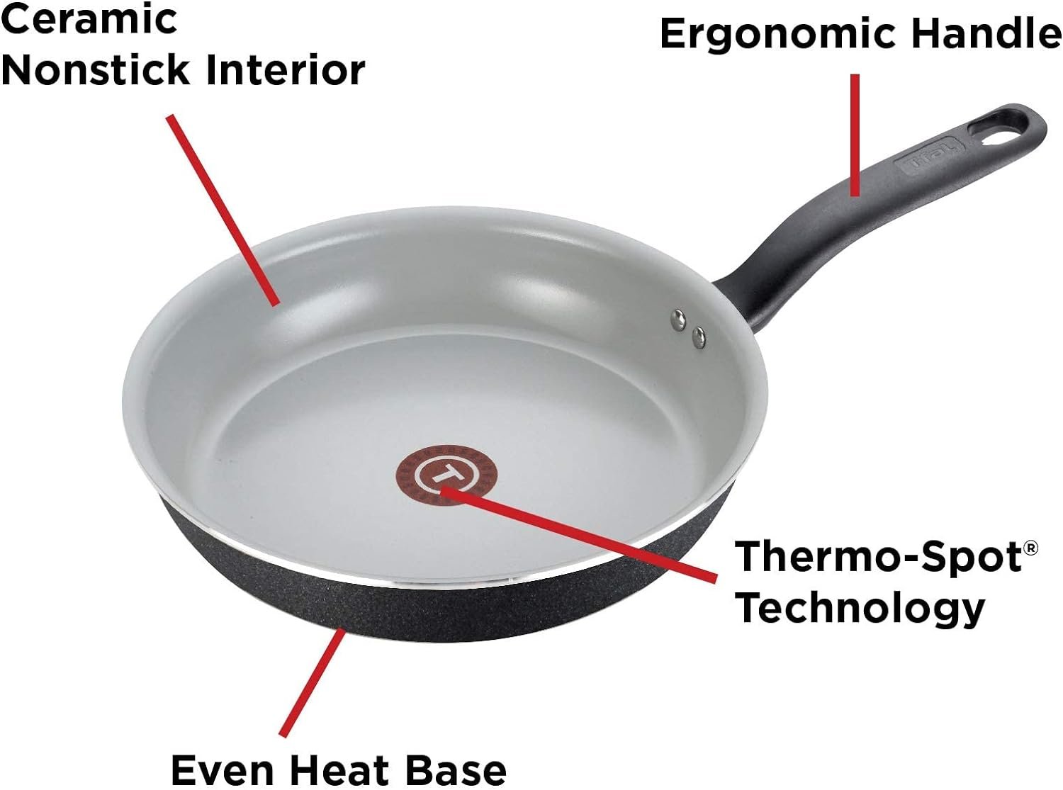 Thermo-Spot Technology: Our unique heat indicator that turns solid red when the ceramic pans are properly pre-heated. Additionally, this kitchen cookware has an even heat base, preventing hot spots for safe reliable cooking results.