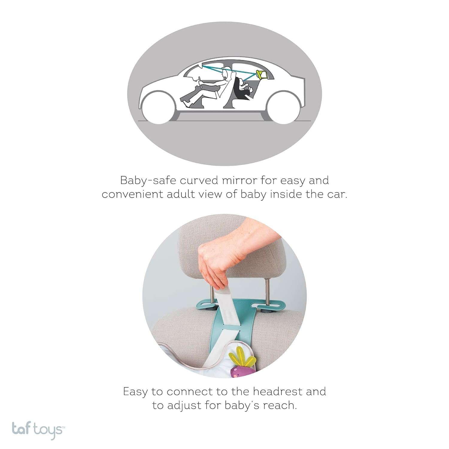 A unique combination of high quality car mirror and a colorful car toy for rear facing babies PERFECT FOR DRIVING PARENTS WITH INFANT AND TODDLERS – There are times when parents need to carry the baby along with them that adds worry when they have to keep the baby alone on rear seat. This toy is suitable for new born infant and toddler, sitting rear facing, on the back of the car.