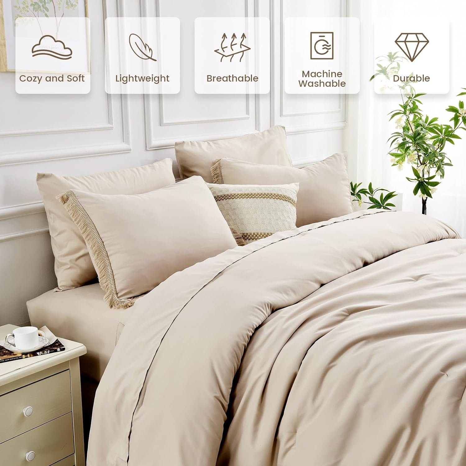 【Lightweight & Fluffy】The tan comforter set offers a luxurious sleeping experience without exerting any downward pressure on your body. It envelops you in its softness, making you feel like you’re melting into a cloud. The well-crafted fabric material ensures a smooth and comfortable touch, creating a dreamy sleeping environment reminiscent of sleeping on a fluffy cloud.