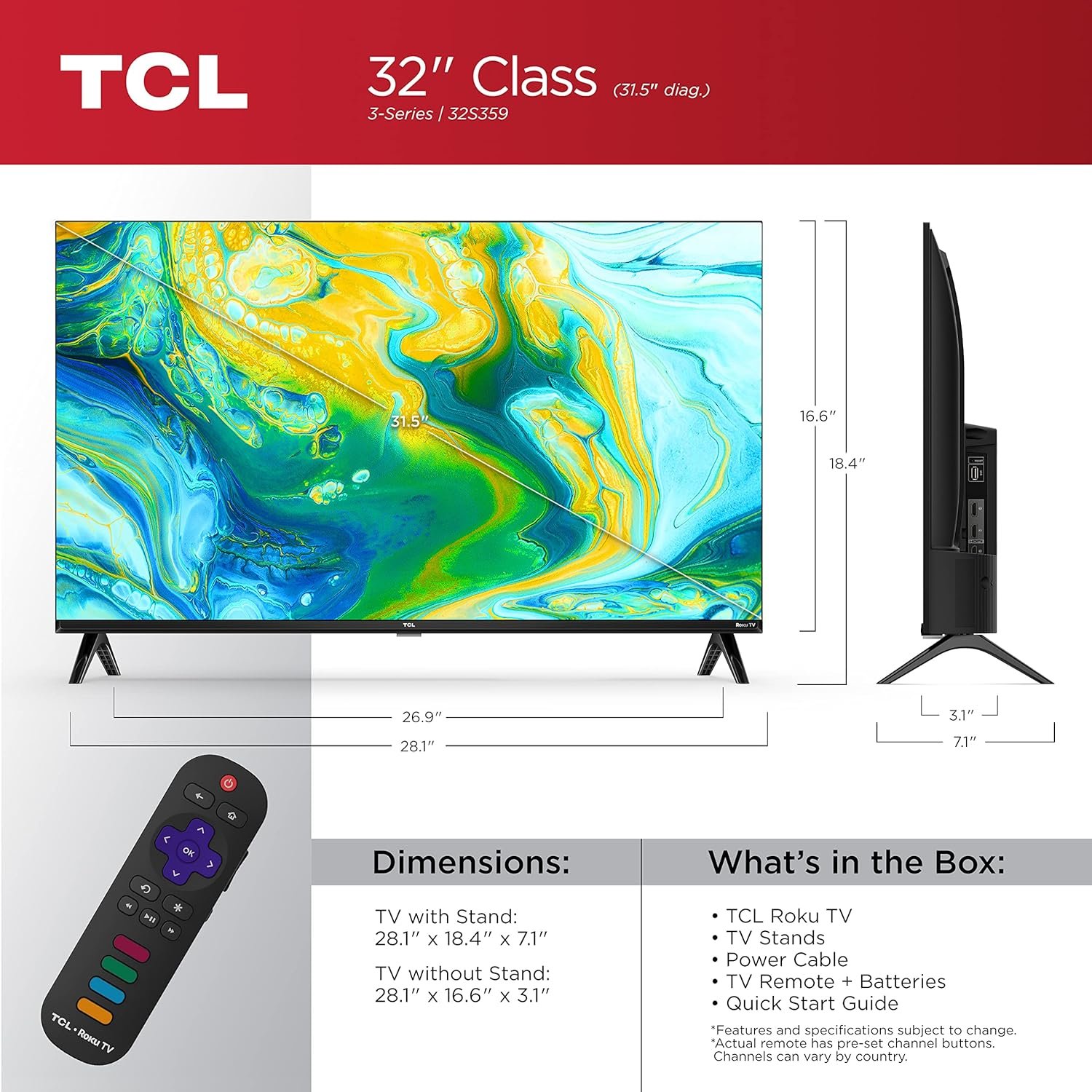 The TCL 3-Series is the simply smart way to enjoy endless entertainment. Enjoy over half a million movies and TV episodes available to stream plus sports, news, music, kids and family, food, science and tech, fitness, foreign language and so much more. Start streaming free TV right from your home screen or browse 250+ free live channels with the Live TV Channel Guide to find what to watch next. Your favorite broadcast TV, streaming channels, gaming console and other devices are front-and-center within a simple, customizable home screen. There’s no more flipping through inputs or wading through complicated menus. The super-simple remote—with about half the number of buttons on a traditional TV remote—puts you in control of your favorite entertainment and includes one-touch shortcuts to popular channels like Netflix.