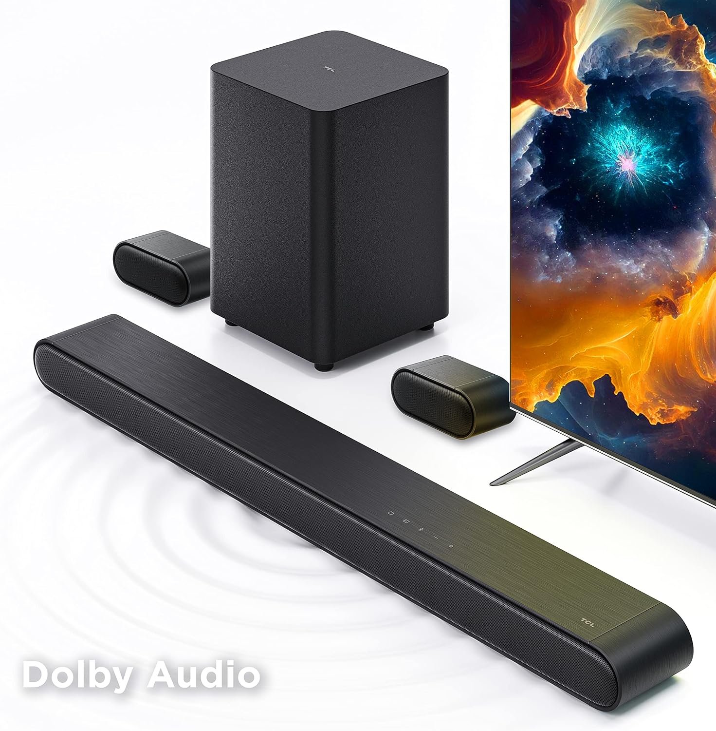 TCL S Series 5.1 Channel Sound Bar with Built-in Center Channel, Surround Sound Speakers, Wireless Subwoofer, DTS Virtual: X, Bluetooth and Voice Assistant Input, S4510, 2023 Model