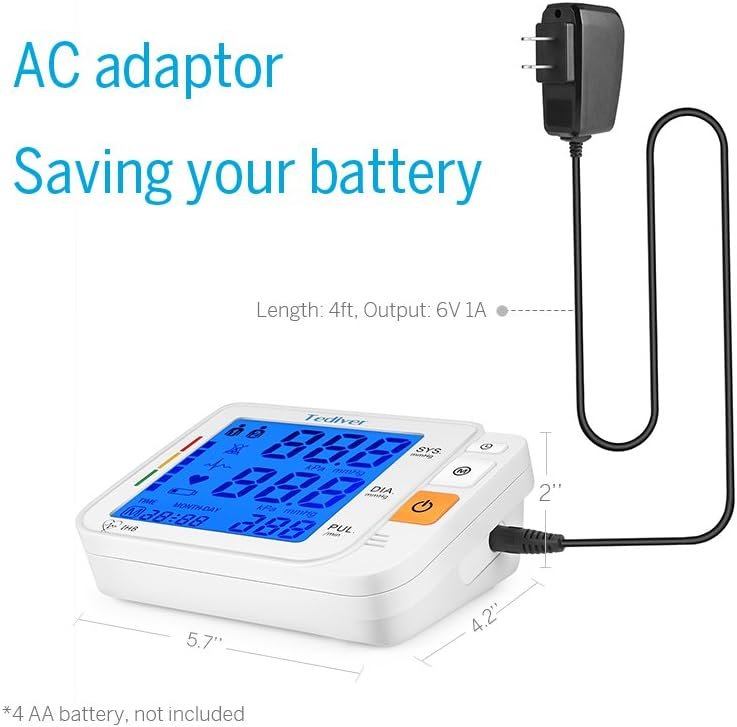 Tediver Digital Blood Pressure Monitor, Large Cuff 0.7-1.3 Feet, Electric Upper Arm Blood Pressure Machine with Electric Powered Charger and Device Case, Backlight LCD screen, 2 Year Warranty