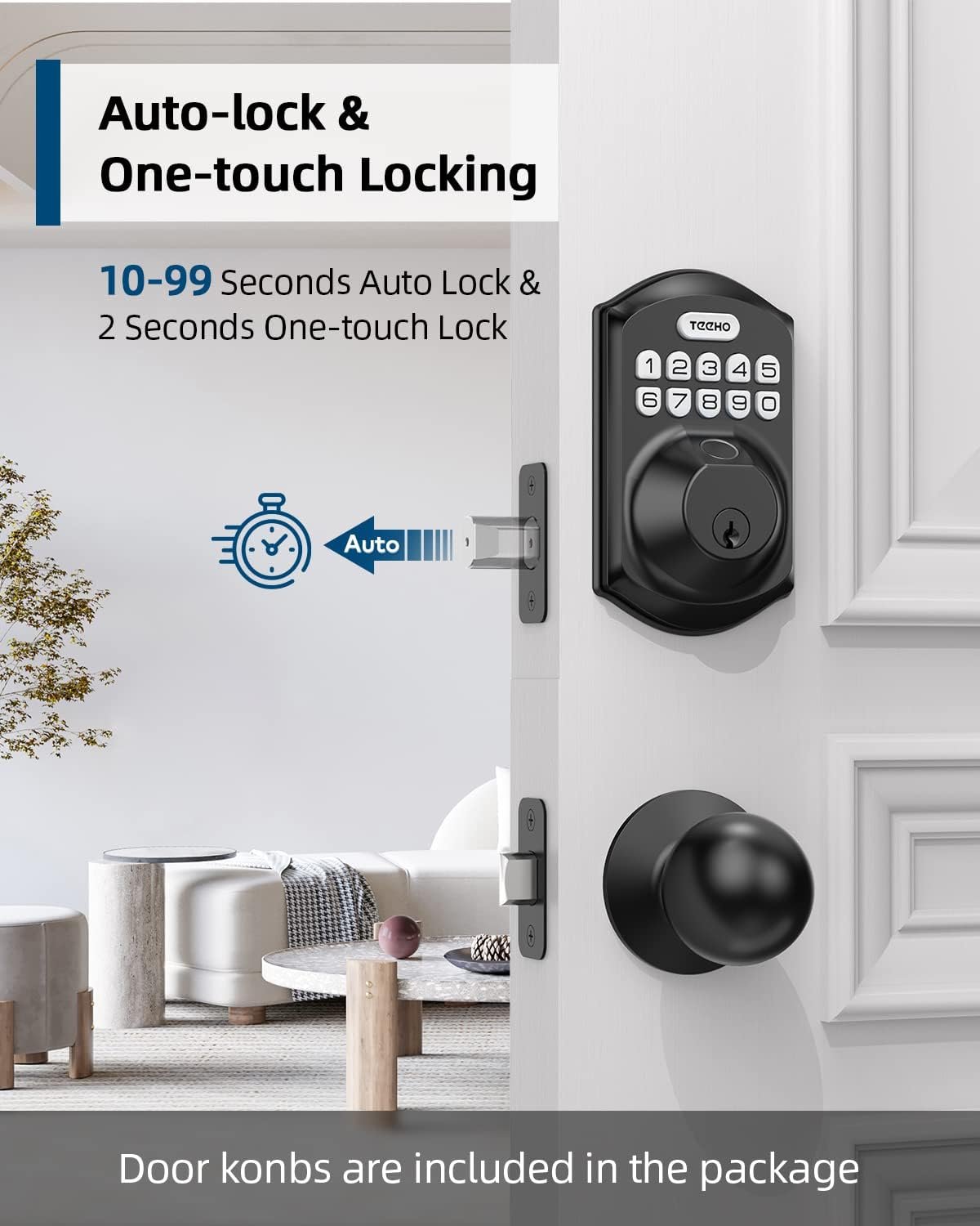 Auto-Lock & One-Touch Lock: Enjoy the convenience of an “automatic door lock” that can be set to lock automatically in 10-99 seconds, or use the “one-touch auto-lock” feature by pressing and holding any key on the keypad for 2 seconds to lock the door.