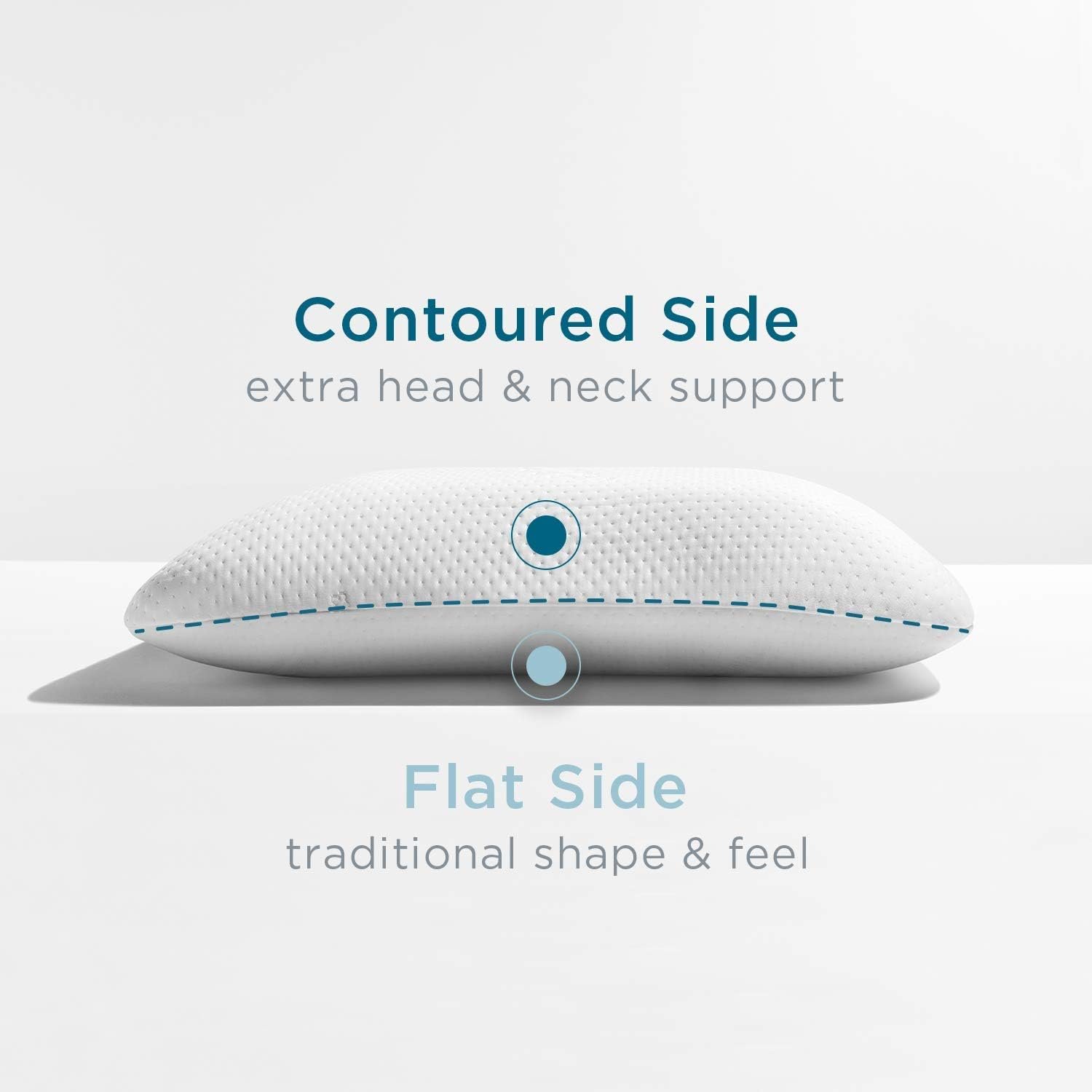 Product 2: DUAL-SIDED SOFT BED PILLOW: Features a gently arched side that provides optimal support for back sleepers and a flatter, more traditional side for personalized comfort for stomach and side sleepers